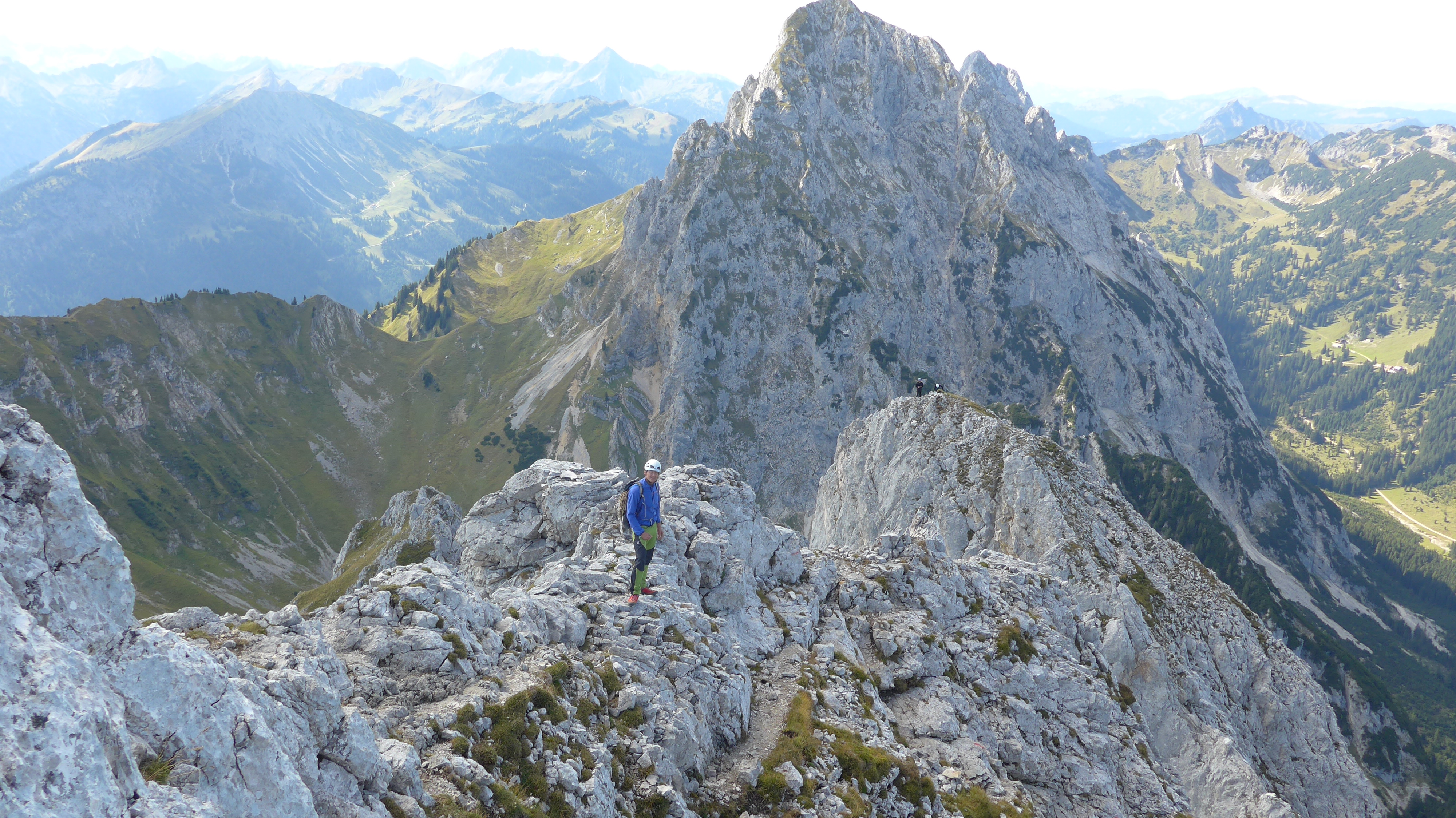 Absteig auf Normalweg mit I - er "Kletterei". Bei Nässe sicherlich unangenehm. Schnurstracks zur Gehrenalpe - Einkehr auf der schönen Sonnenterrasse. Man mag bei der Aussicht gar nicht aufstehen (Übernachtung möglich).