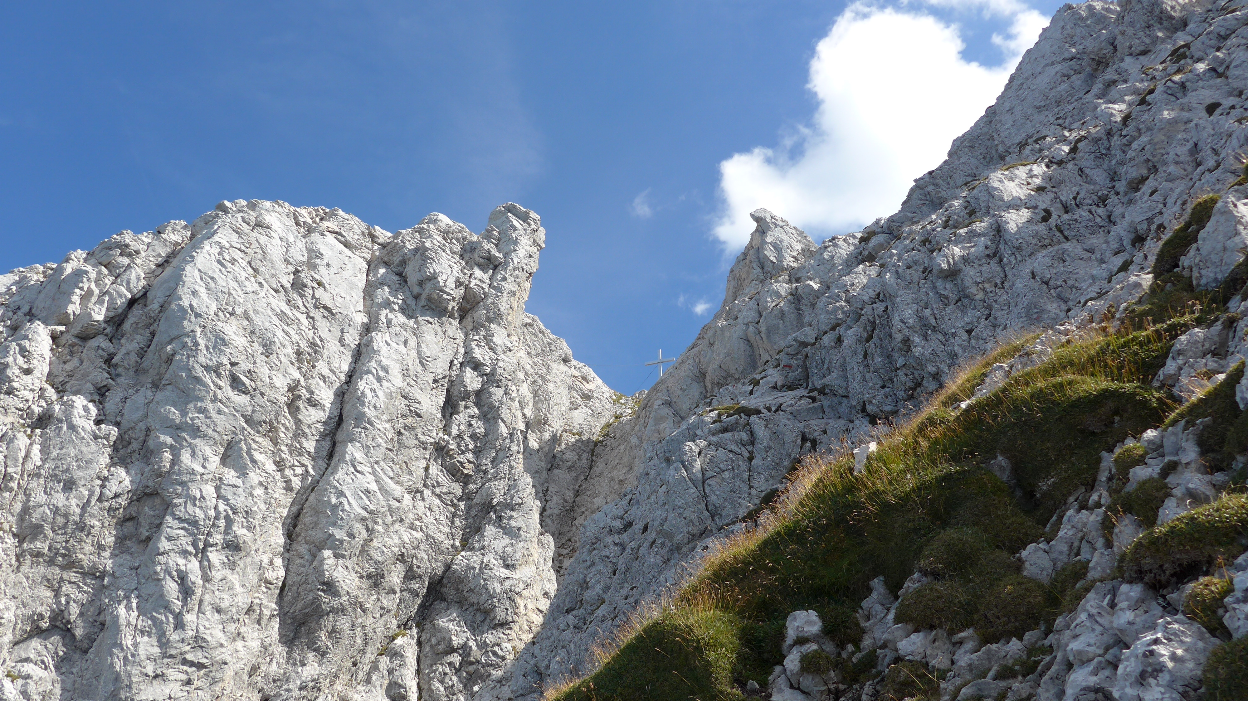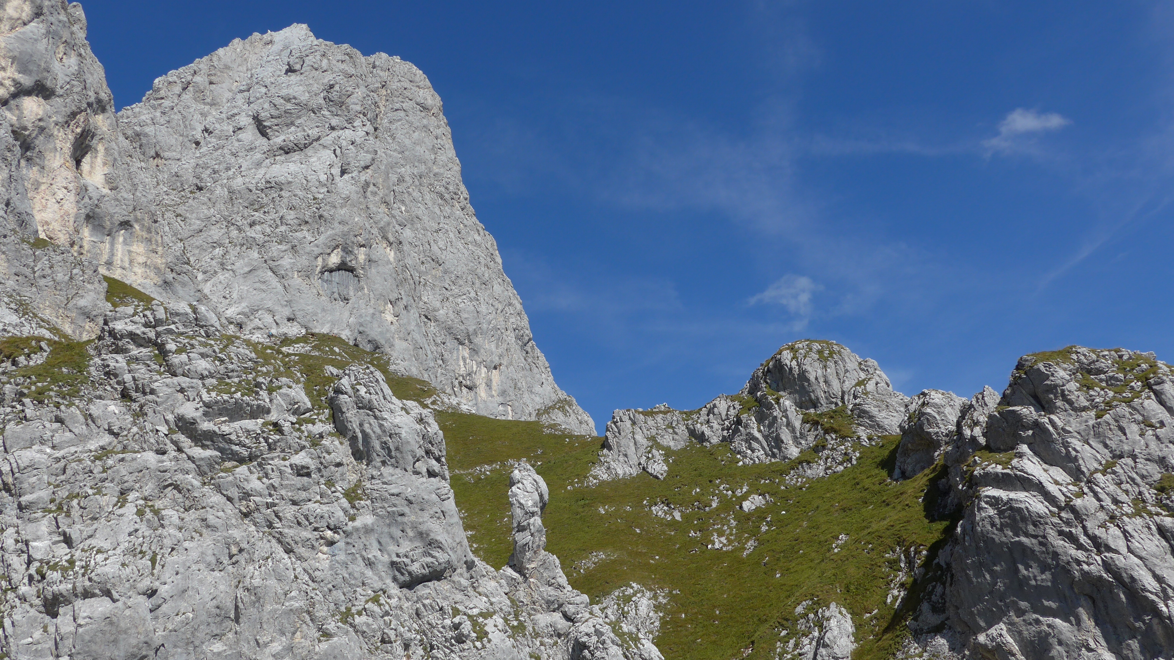 Weg wie in AV - Karte eingezeichnet, an der Gehrenalpe vorbei zum Gehrenjoch. Hier Klettereinlage in der Südwand.