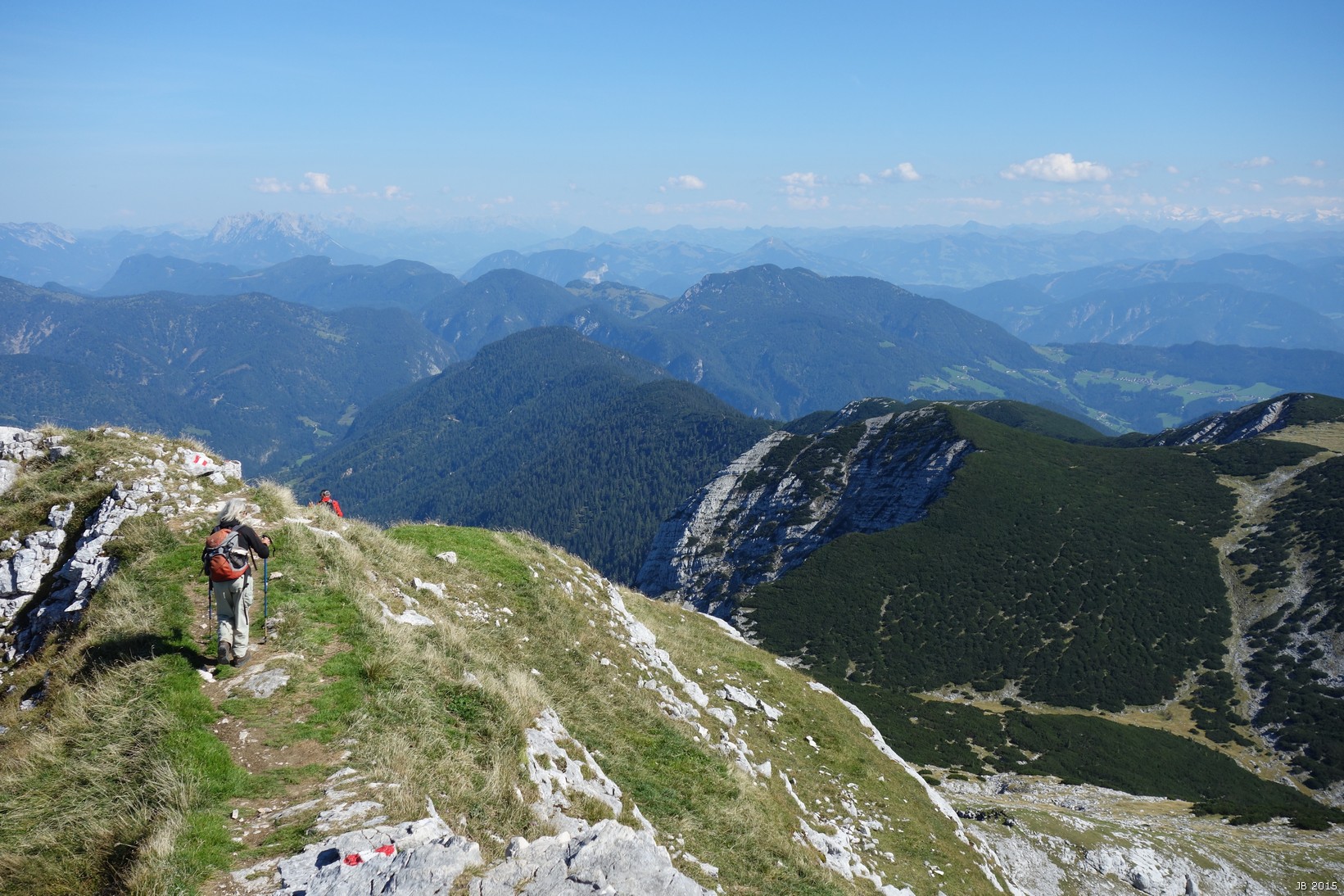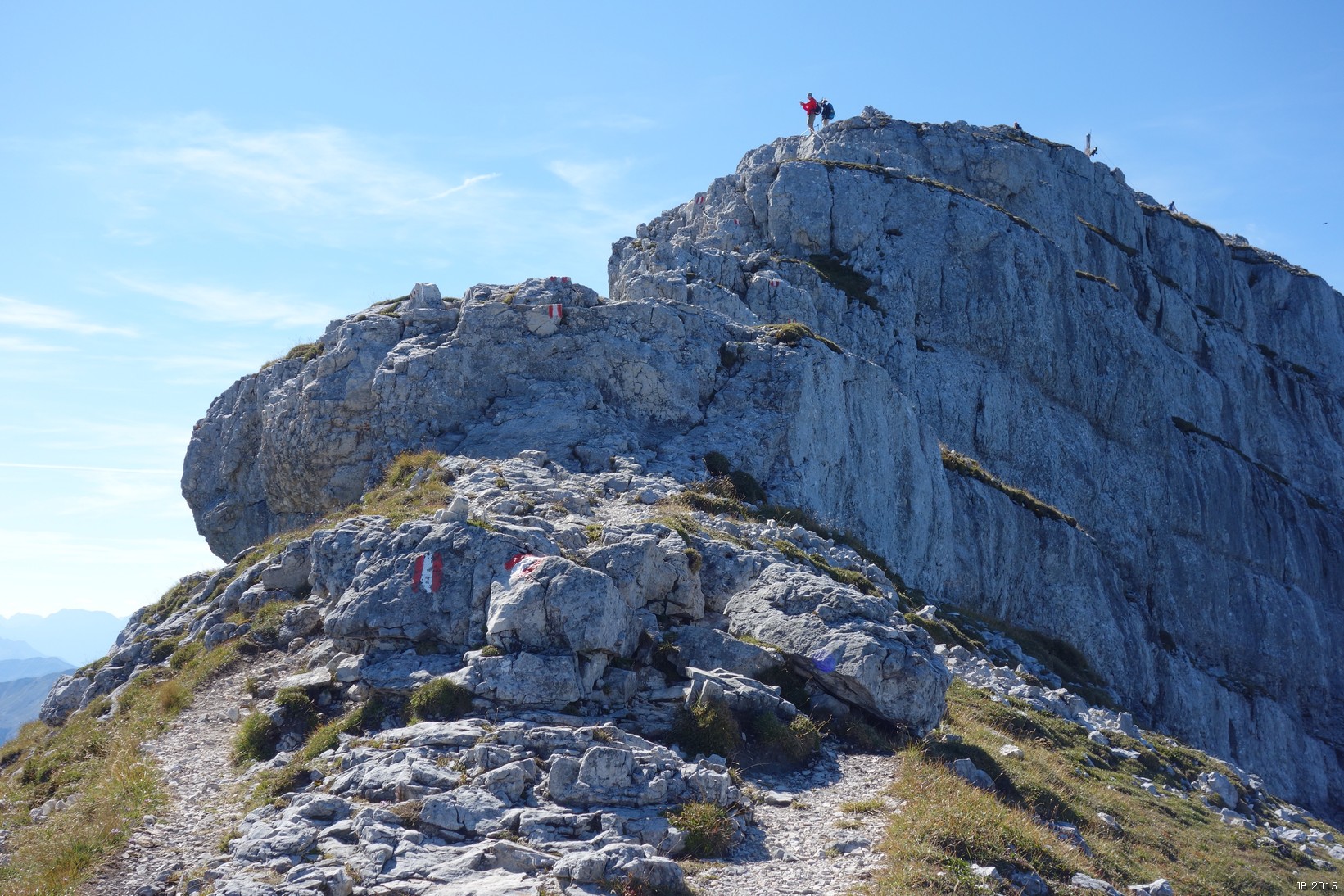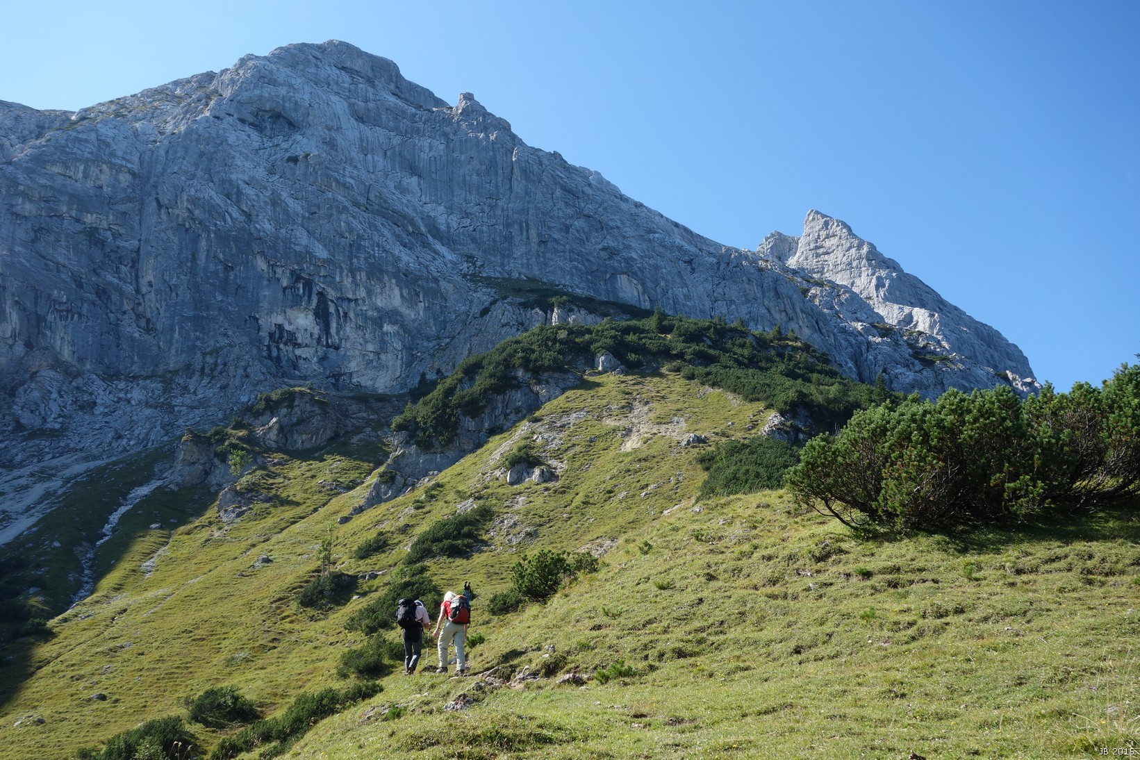 Auch der Abstieg durch die Südseite zieht sich und erfordert an den felsdurchsetzten Steilstücken zwischen den Latschen volle Konzentration.