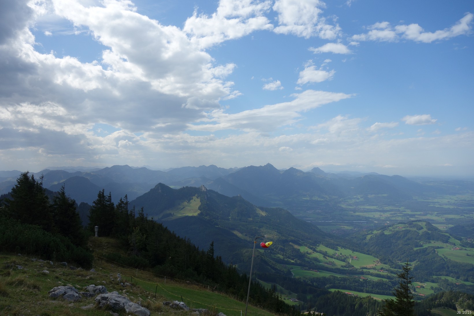 Zu Fuß auf Weg Nr 26 durch schönen Bergwald auf die Hochries (1588m) , die Hütte ist trotz Baumaßnahmen gut bewirtschaftet.