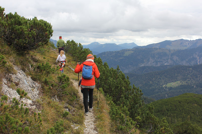 Tourenverhältnisse: Alle Bergsteige (auch die erodierten Pfade oberhalb der Jocher Alm) waren trocken und gut zu gehen.