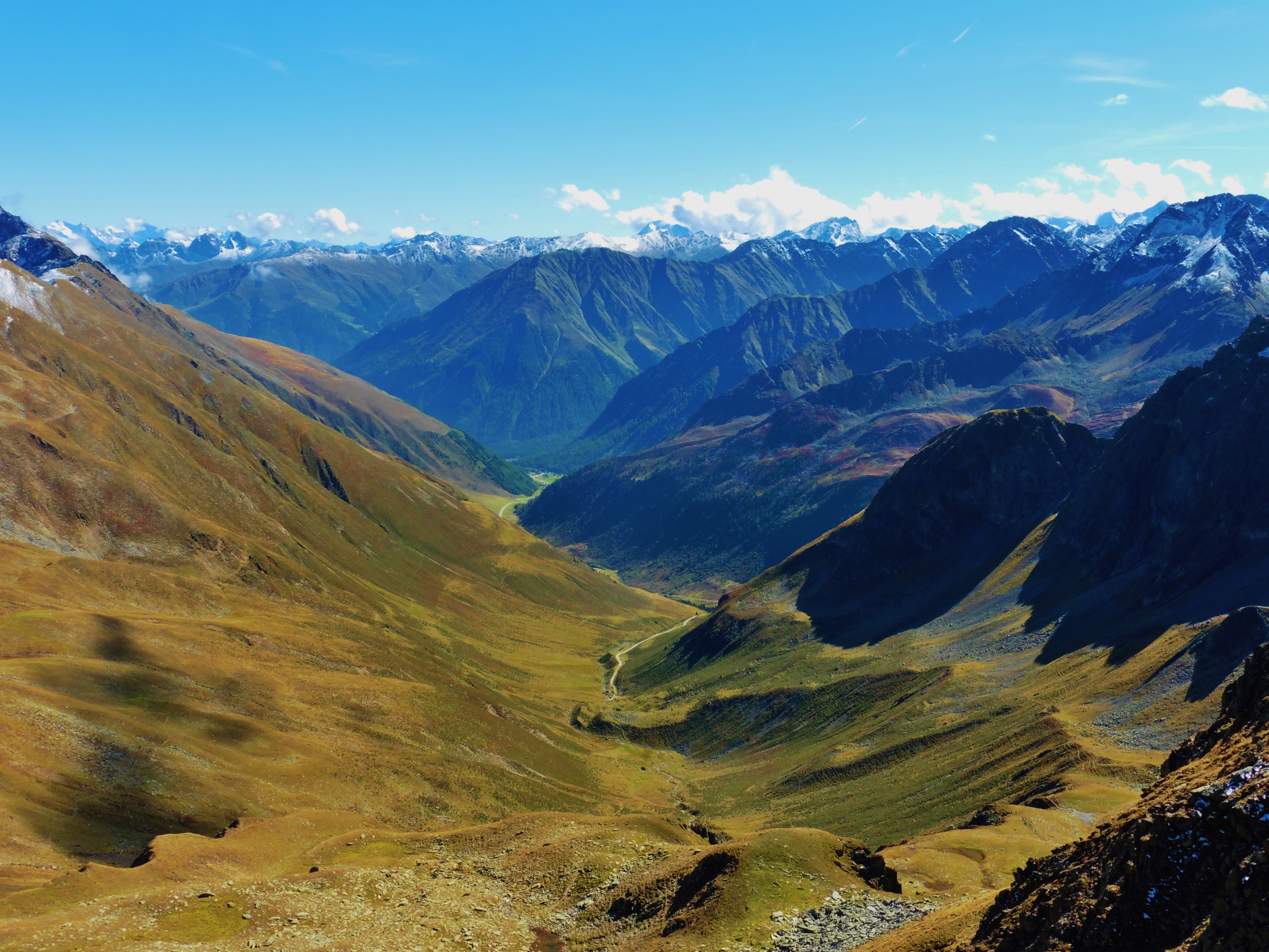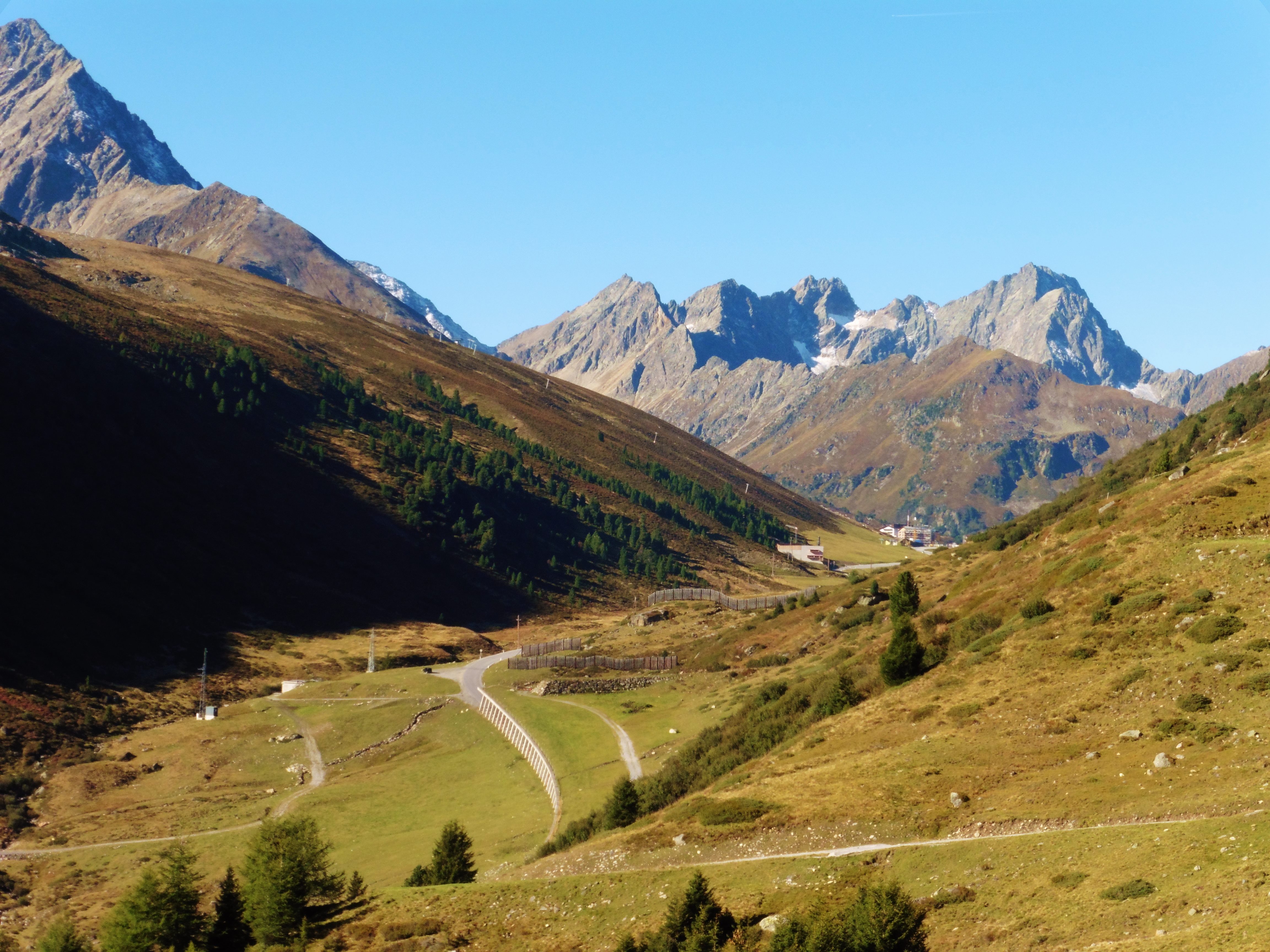 zu Bild 8: durch dieses Tal verläuft der Auf- resp. der Abstiegsweg; unten ist die genannte Almstraße erkennbar;