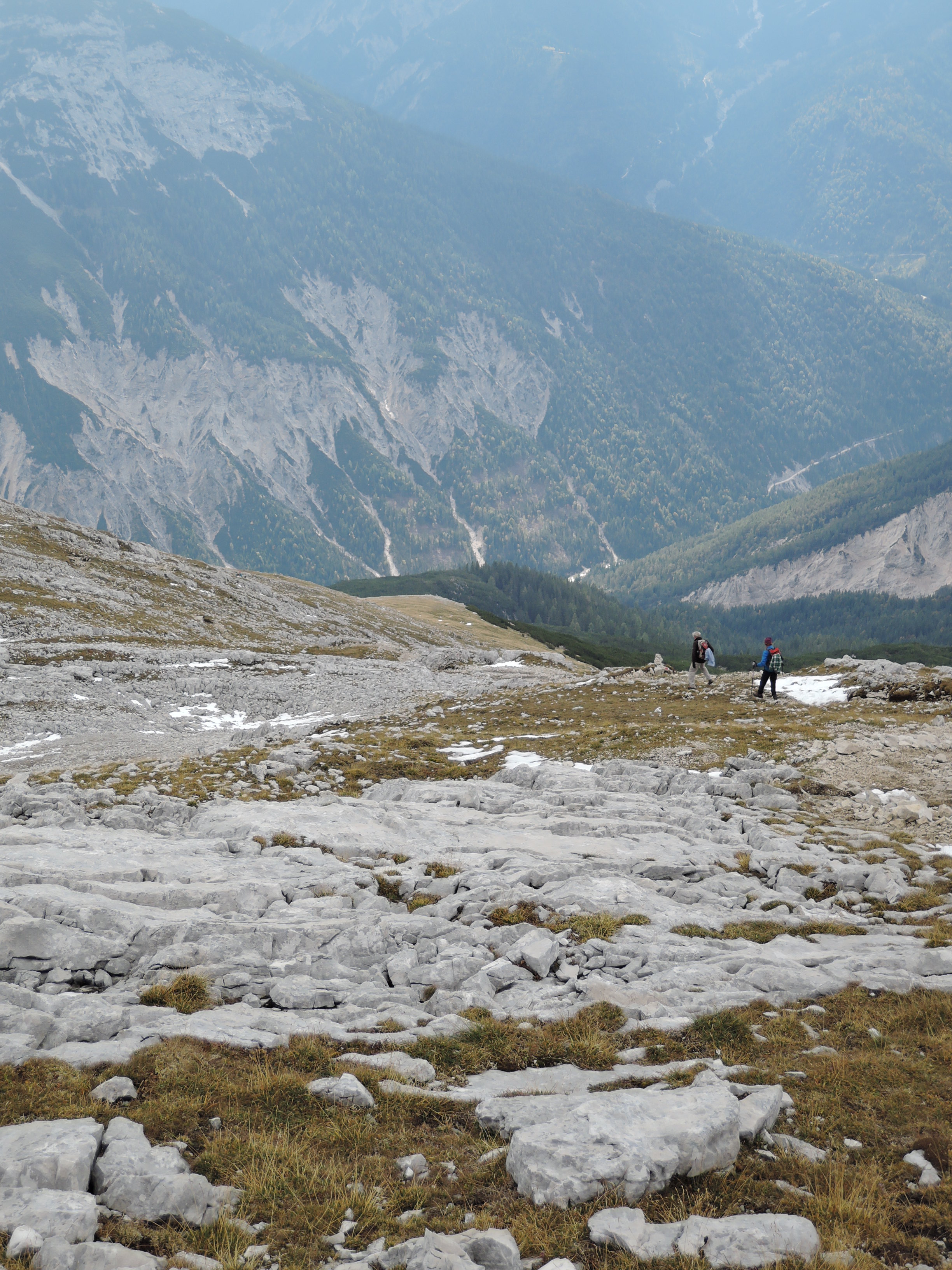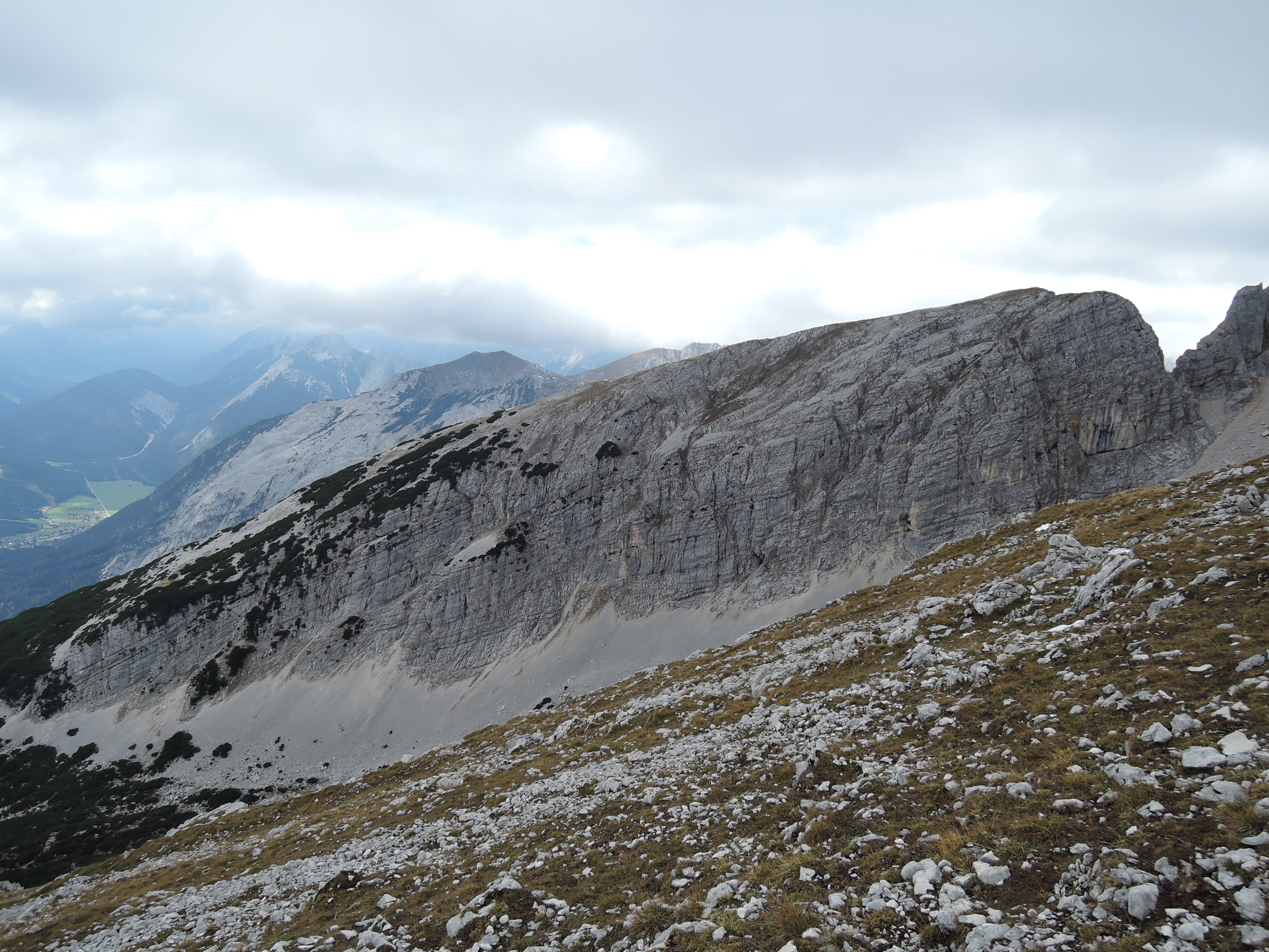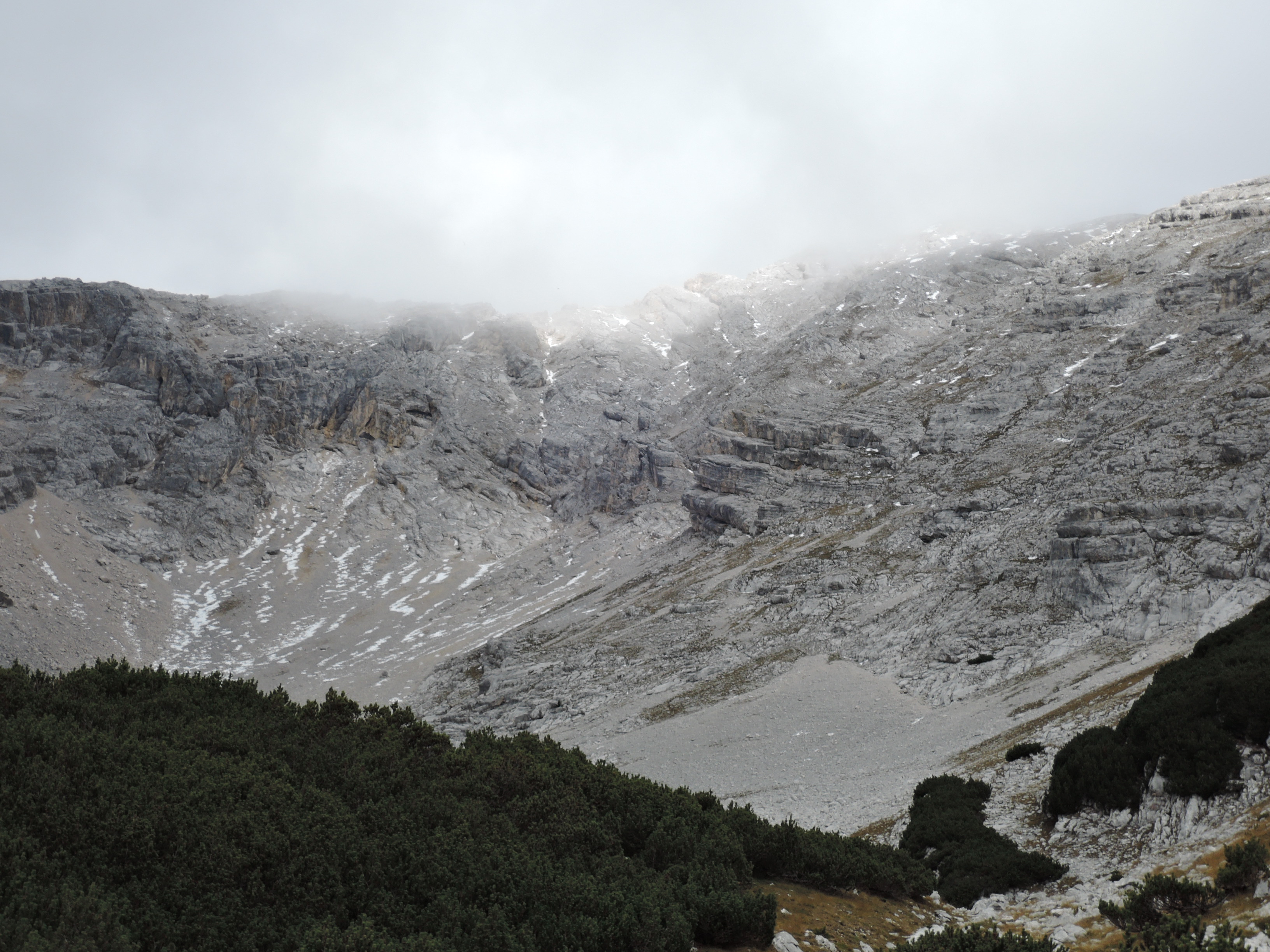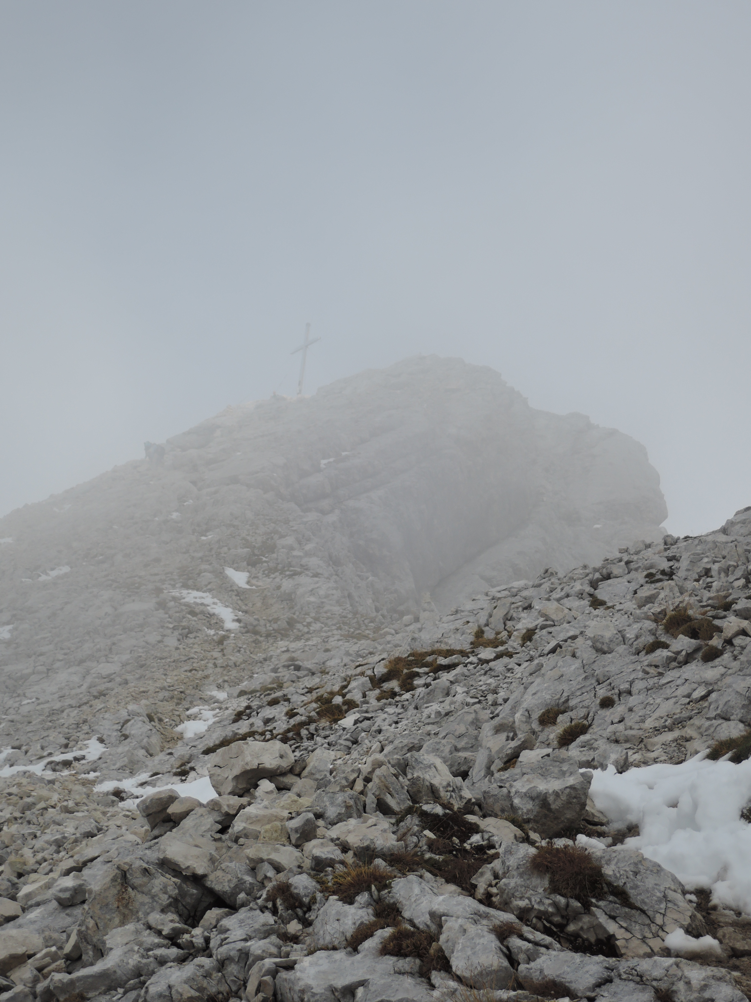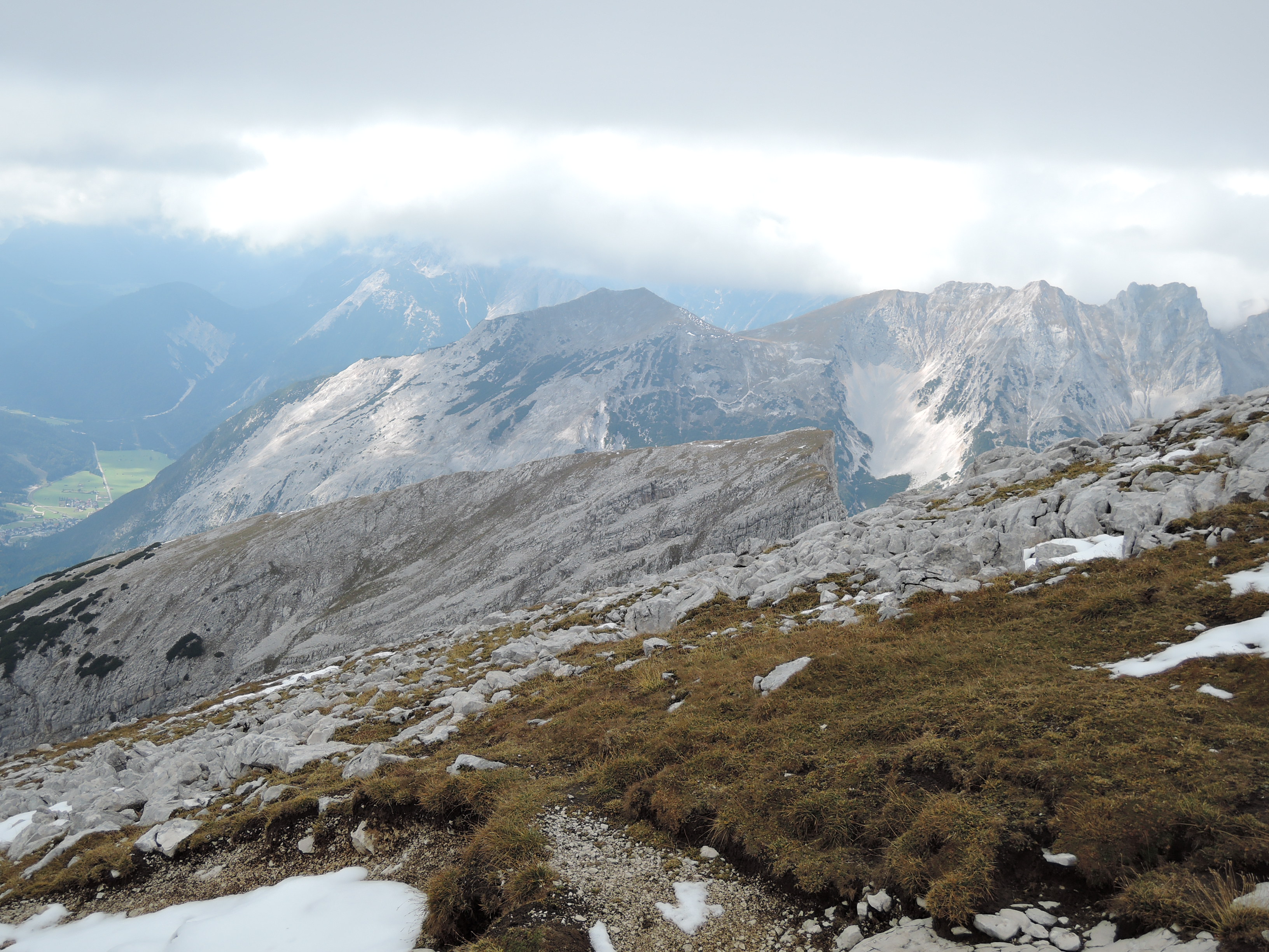 Tourenverhältnisse: Eigentlich war für diesen Tag eine 'höhere' Tour eingeplant aber aufgrund des Neuschnees in hohen Lagen haben wir Steigeisen und Sicherungszeugs zu Hause gelassen und haben stattdessen das Mountainbike eingepackt um den Pleisen anzugehen. Schon unten am Parkplatz war es für die Jahreszeit ungewöhlich kühl mit knapp über Null Grad. Die mittelsteile Auffahrt zur Hütte sorgte dann schon für ausreichende Durchwärmung. Zudem kam immer wieder die Sonne heraus und machte die Rast auf der Terrasse der Pleisenhütte einigermaßen angenehm. Der Fußweg zum Gipfel ist problemlos zu gehen. Nur wenige Schneereste im oberen Teil liegen mehr auf dem Weg. Leider wurde der Nebel im Gipfelbereich dichter statt dass es aufgemacht hätte. So waren das Karwendeltal und die Aufstiegsroute im Süden jeweils nur für Sekunden zu sehen. Bei klarem Wetter ist das natürlich viel schöner. Aber auch dieses Wetter hat seinen besonderen Reiz und man freut sich wenn der Blick ins Tal plötzlich frei wird. :)