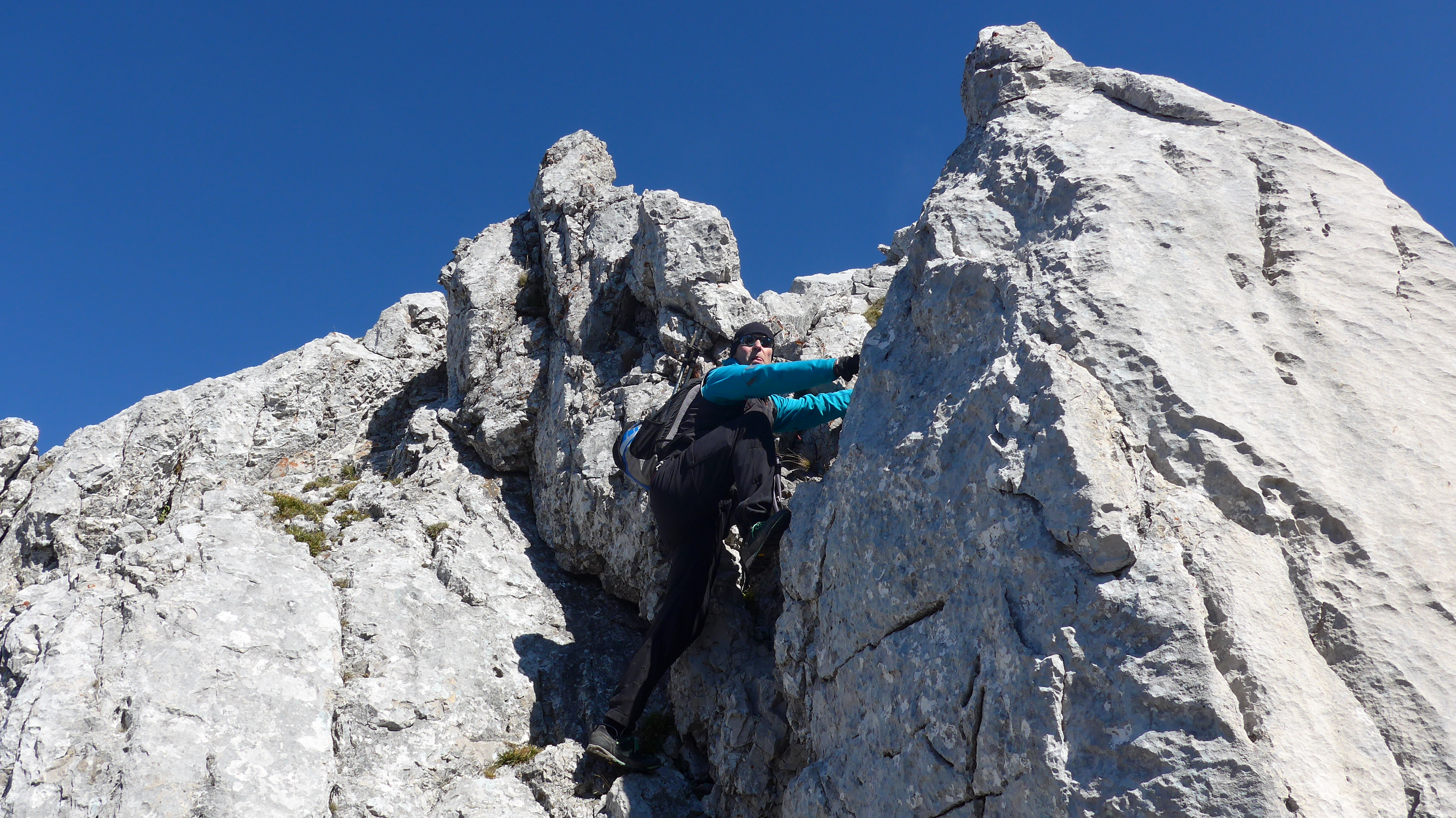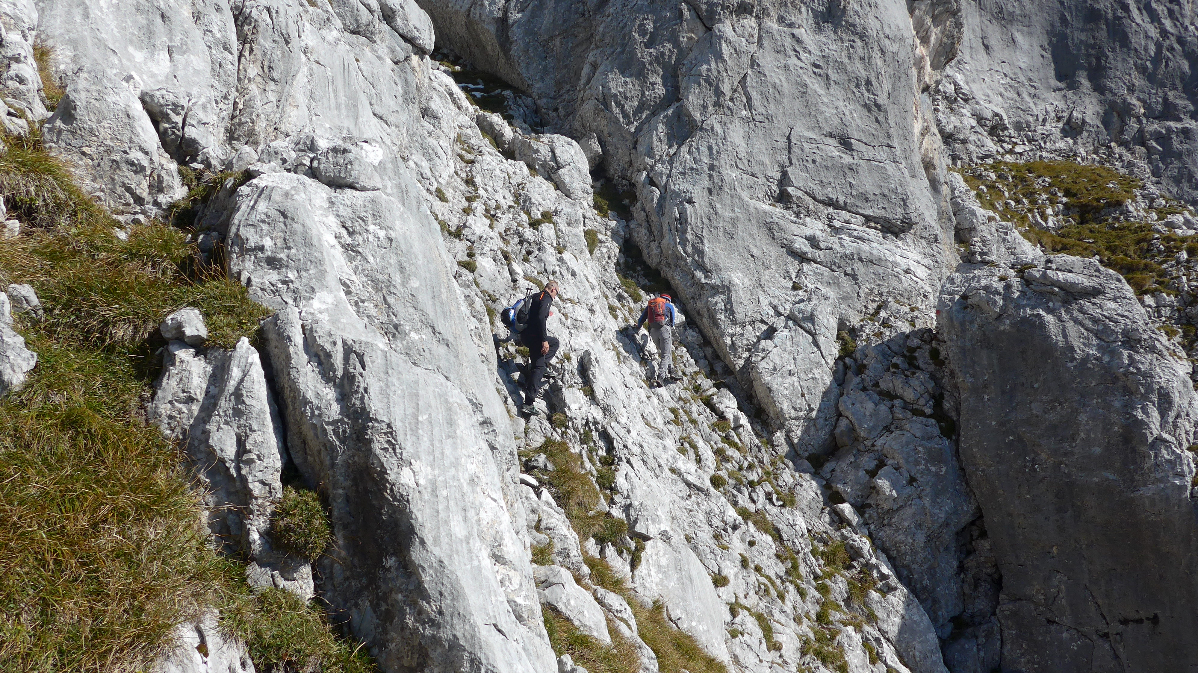 Gefahreneinschätzung: Meist fester Fels verspricht Klettergenuss bis zum II. Grad. Schwindelfreiheit + Trittsicherheit erforderlich. Nur bei guten Verhältnissen. Wenige Stellen ausgesetzt. Heute vereinzelt Schneereste.