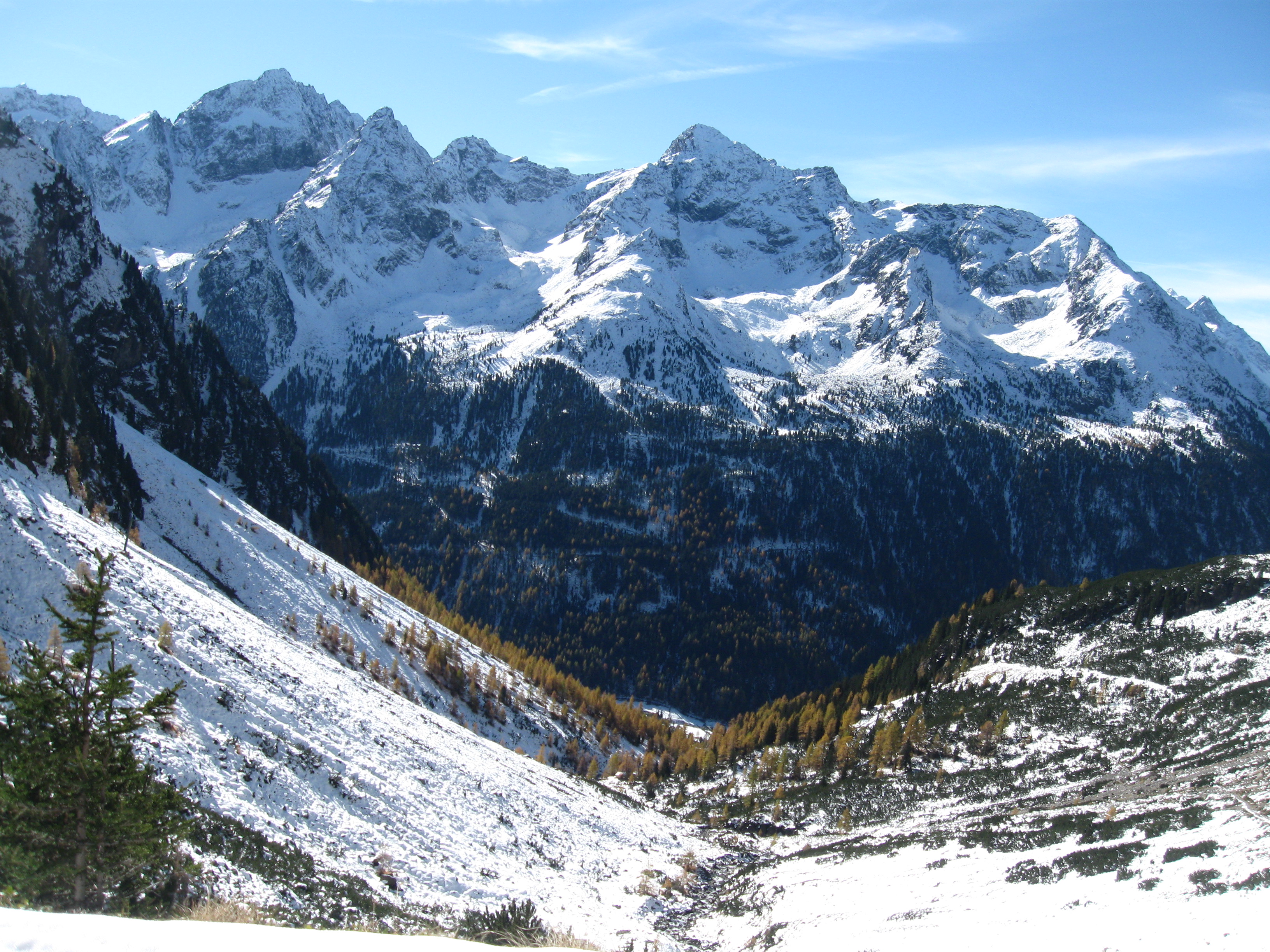 Nordseitig und ostseitig liegt der Schnee bis Gries.