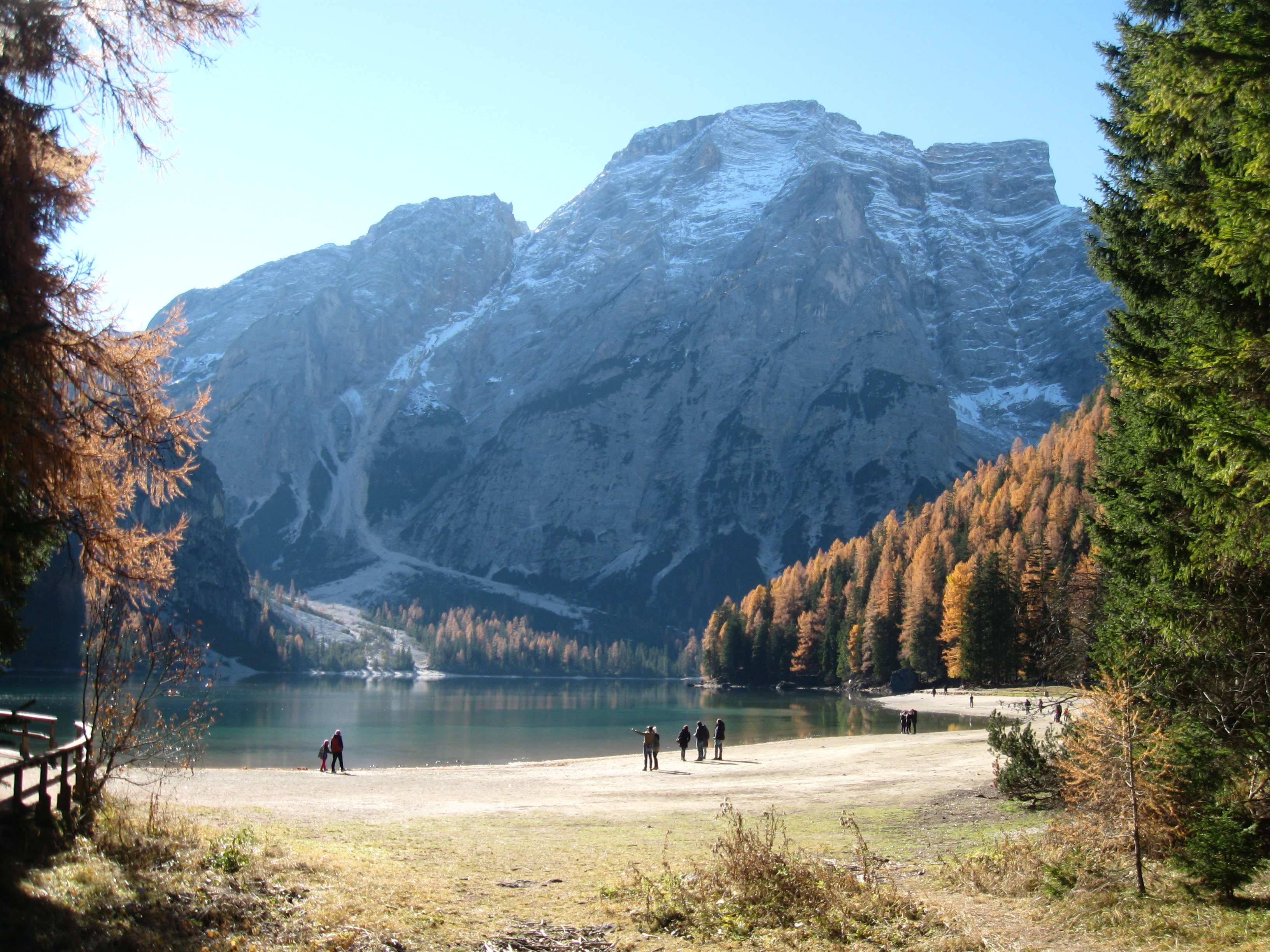Bilder / GPS-Track: Bild 1: Pragser Wildsee mit Seekofel; Bild 2: Pragser Wildsee; Bild 3: Berge im Grünwaldtal (?); Bild 4: Spitzköfel-Ostgrat