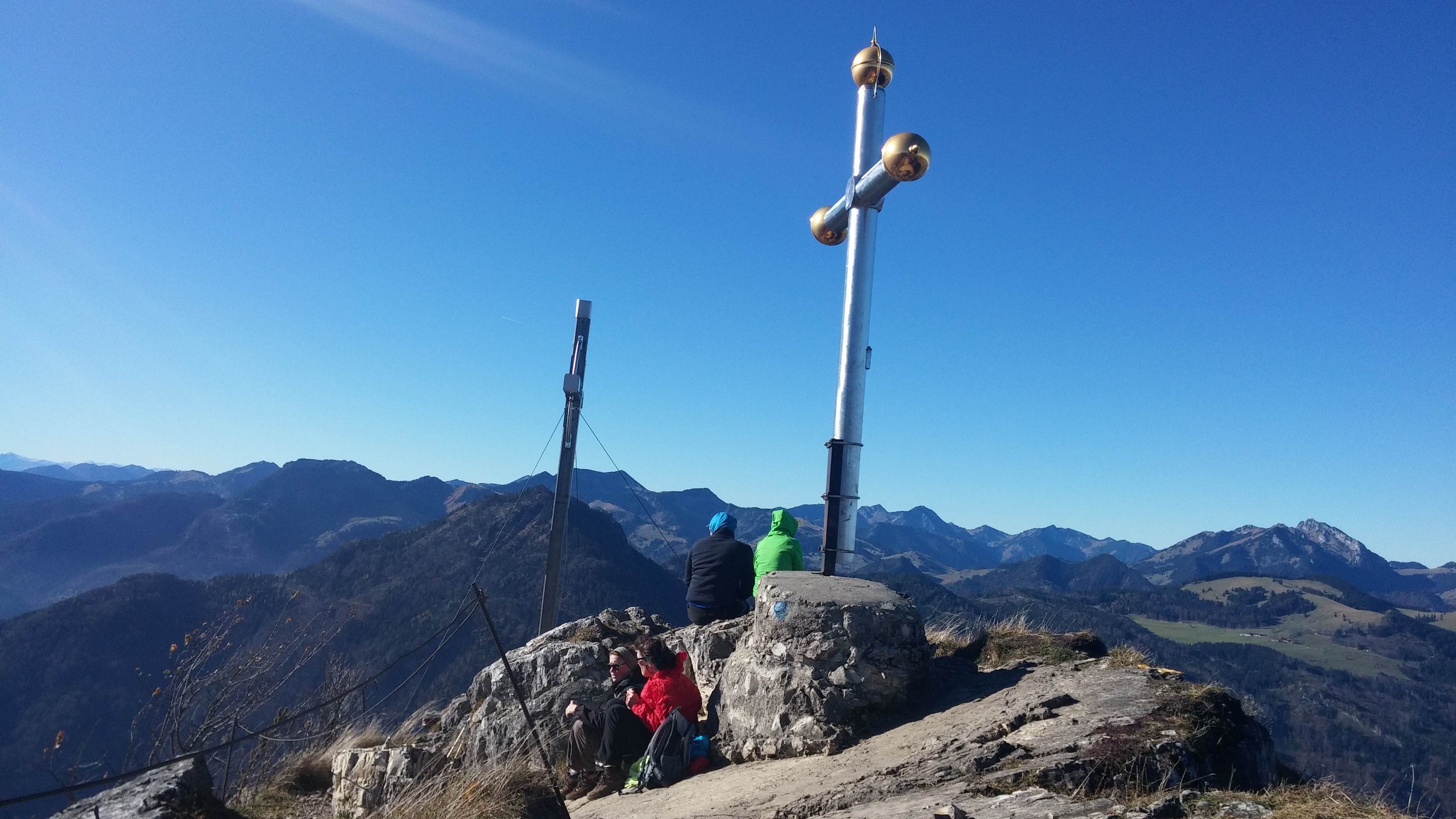 Tourenverhältnisse: Vom AP über Almgelände und Forsstraßen hinauf zur Kranzhornalm. Danach über den Steig zum Gipfel (Aussichtskanzel über dem
