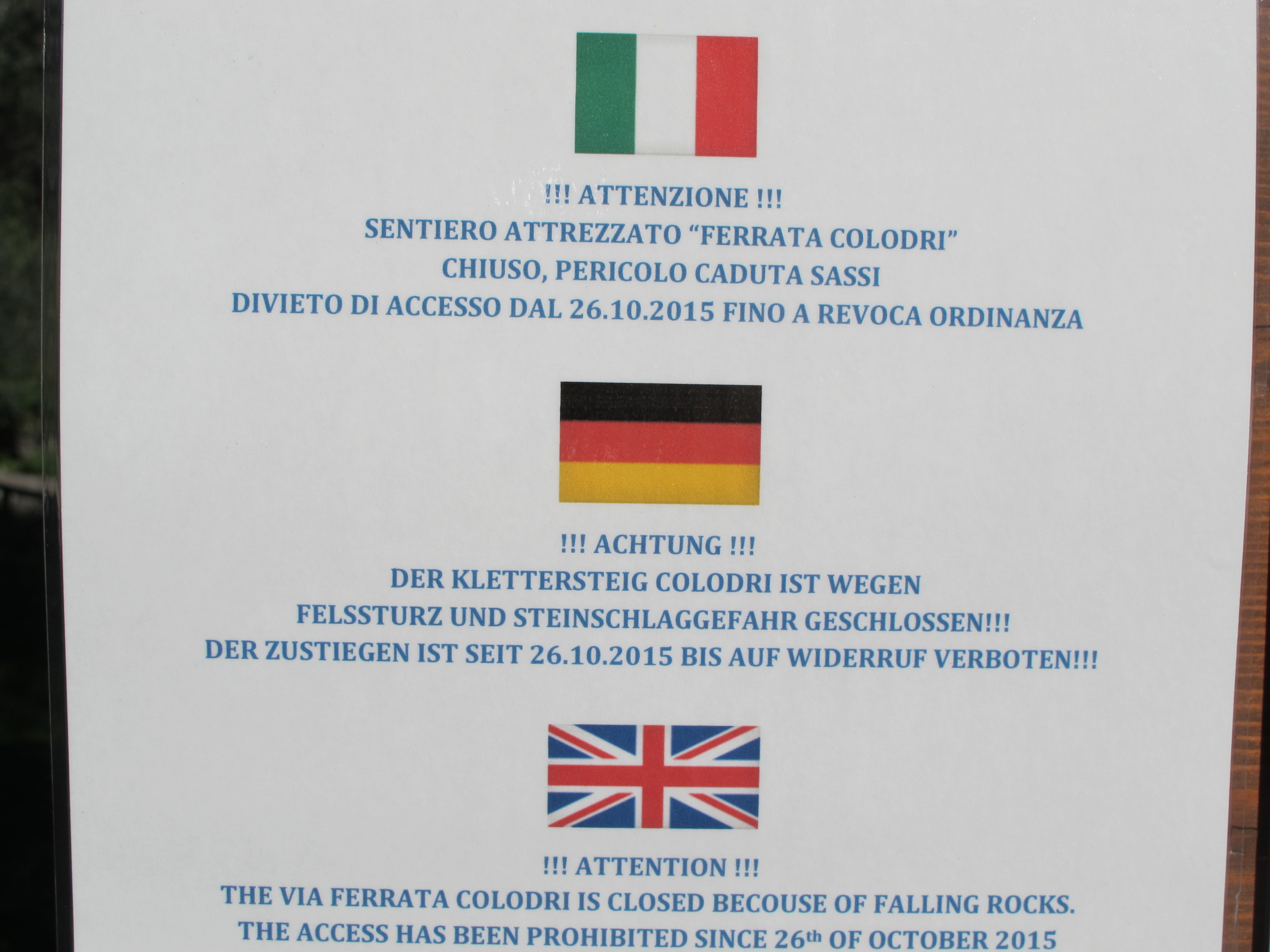 Der beliebte Colodri Klettersteig bei Arco am Gardasee ist seit kurzem gesperrt!