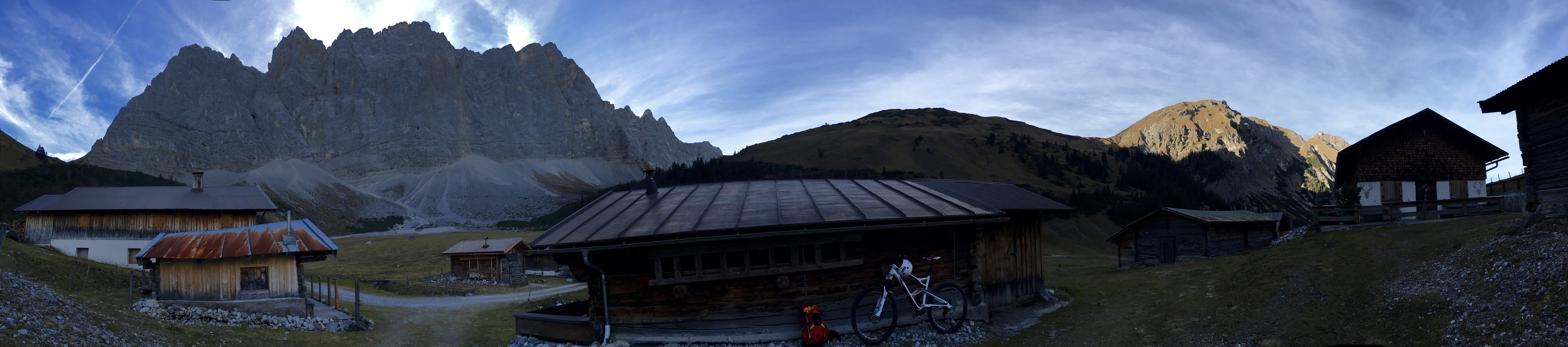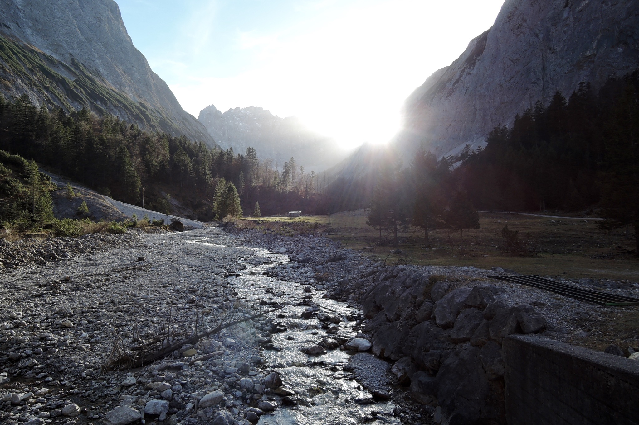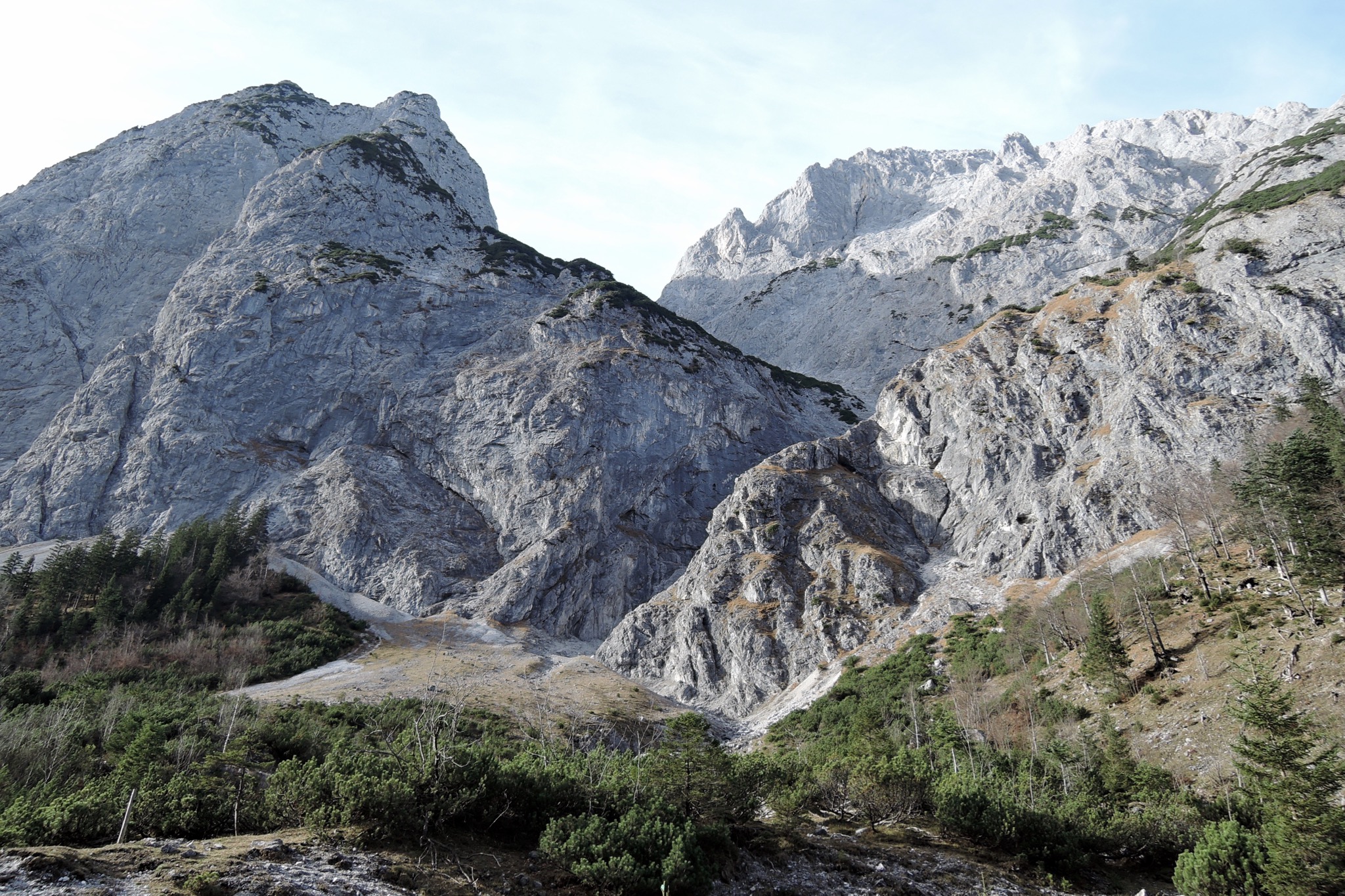 Sonstiges: Von Hinterriß (938m) auf der schon gesperrten Mautstrasse an der Garberlalm (966m) vorbei auf der Forststrasse durchs Laliderertal hinauf zum Lalidersalm Niederleger (1526m) unter den Laliderer Wänden mit südwestlich der Laliderer Spitze (2588m) und südlich der Dreizinkenspitze (2602m).