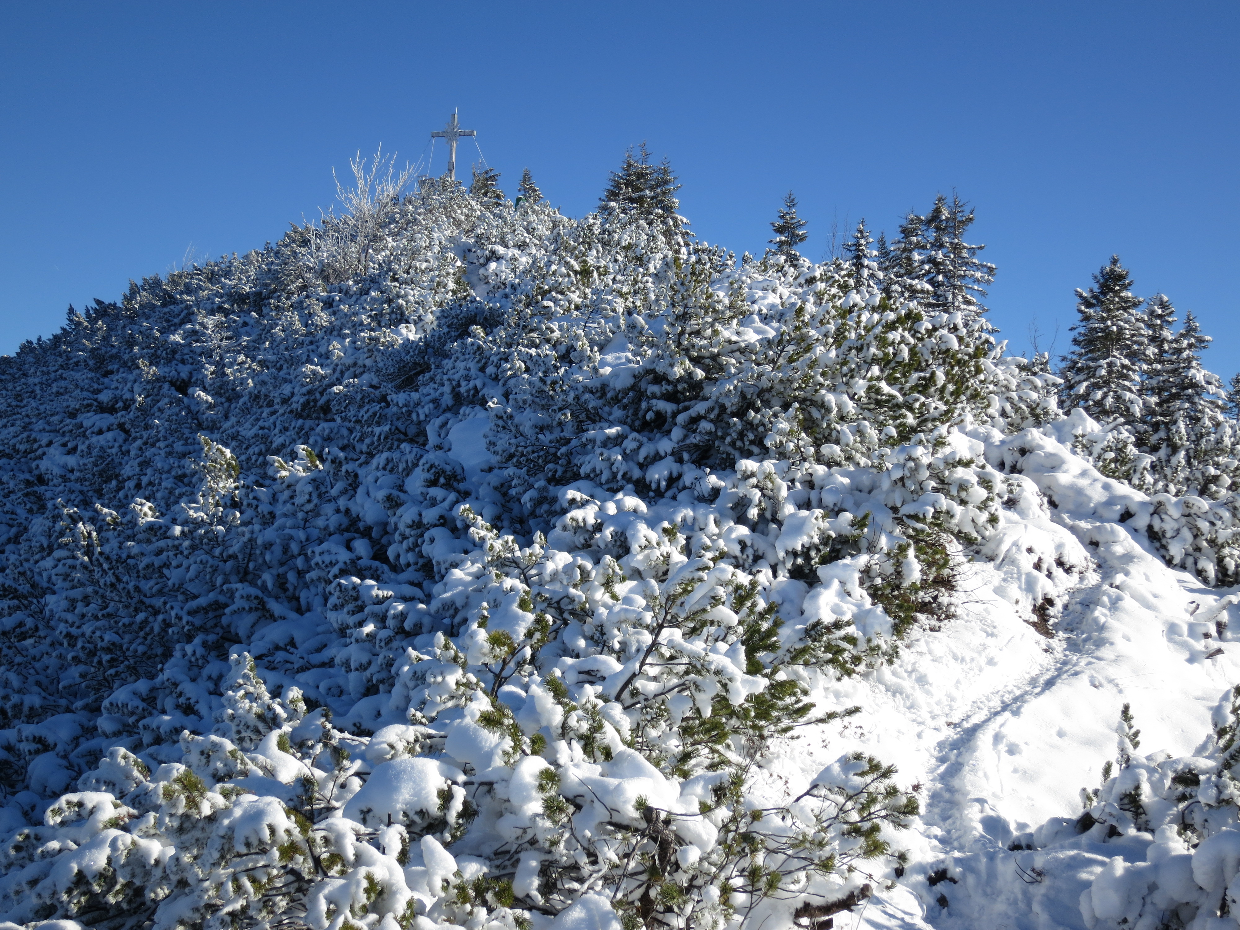 Tourenverhältnisse: Aufstieg über Josefsbichl weiter auf unmarkierten Wegen über das Burgrainer Kreuz zum Wank. Bis 1200 m war es ziemlich schneefrei, aber auch weiter bis 1500 m lag nur so 5 cm oder weniger. Nennenswerter Schnee dann ab ca. 1500 m, aber auch nur bis zu 15 cm und für die Wanderung nicht hinderlich. Abstieg dann auf dem markierten Weg über die Eckenhütte und Gamshütte zum Josefsbichl. Durchwegs festgetretener Schnee bzw. weiter unten dann aper. Insgesamt also eine schöne, problemlose Vorwinterwanderung.