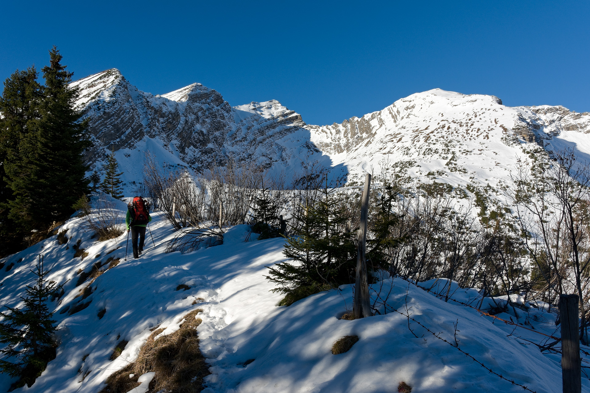 Bis zum Kelmer Jöchl fast schneefrei, nur einige Stellen feucht und etwas rutschig. Dnach geschlossene Schneedecke, aber zu wenig zum Skifahren. Zu Fuß/mit Schneeschuhen war es super. Fast niemand unterwegs.