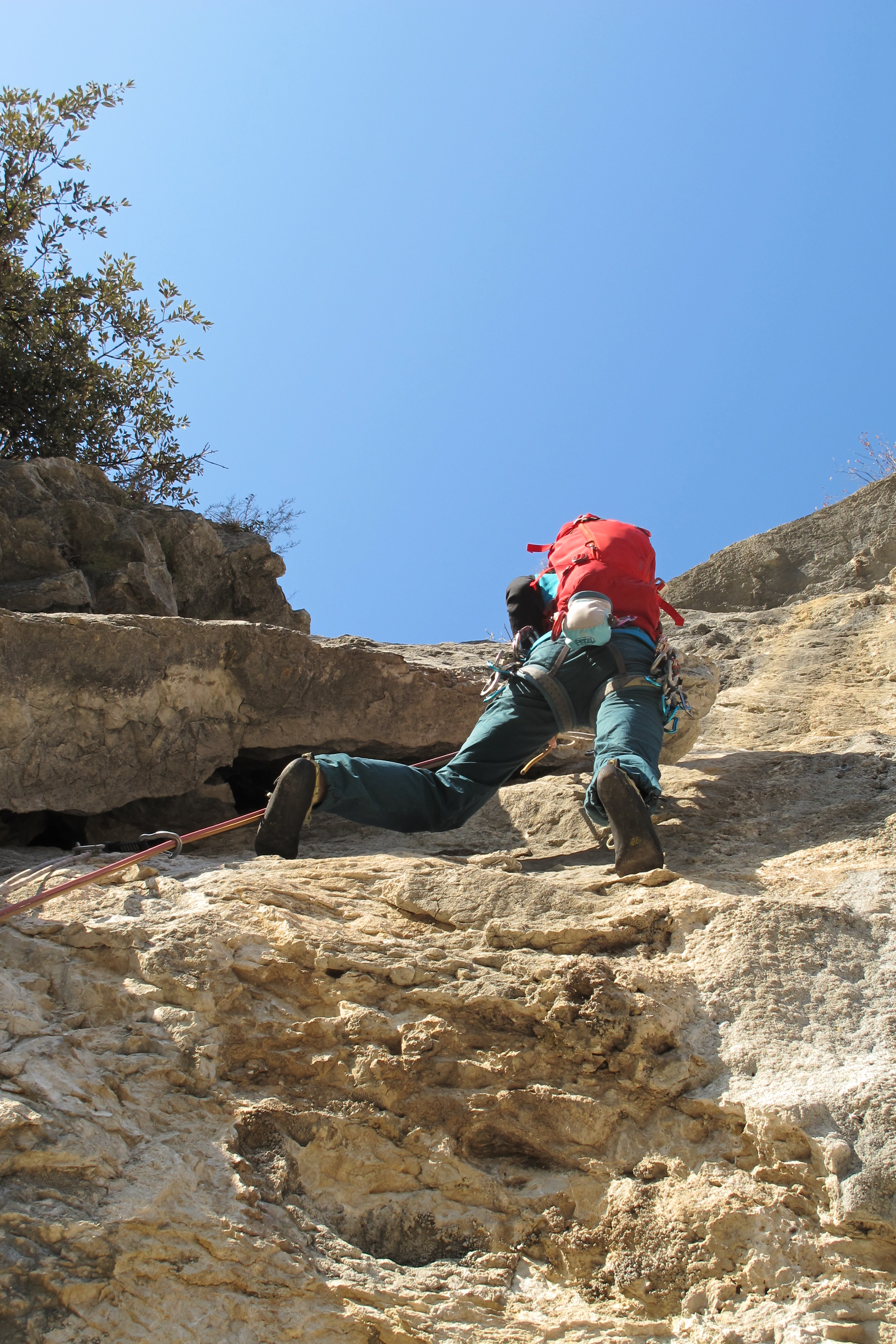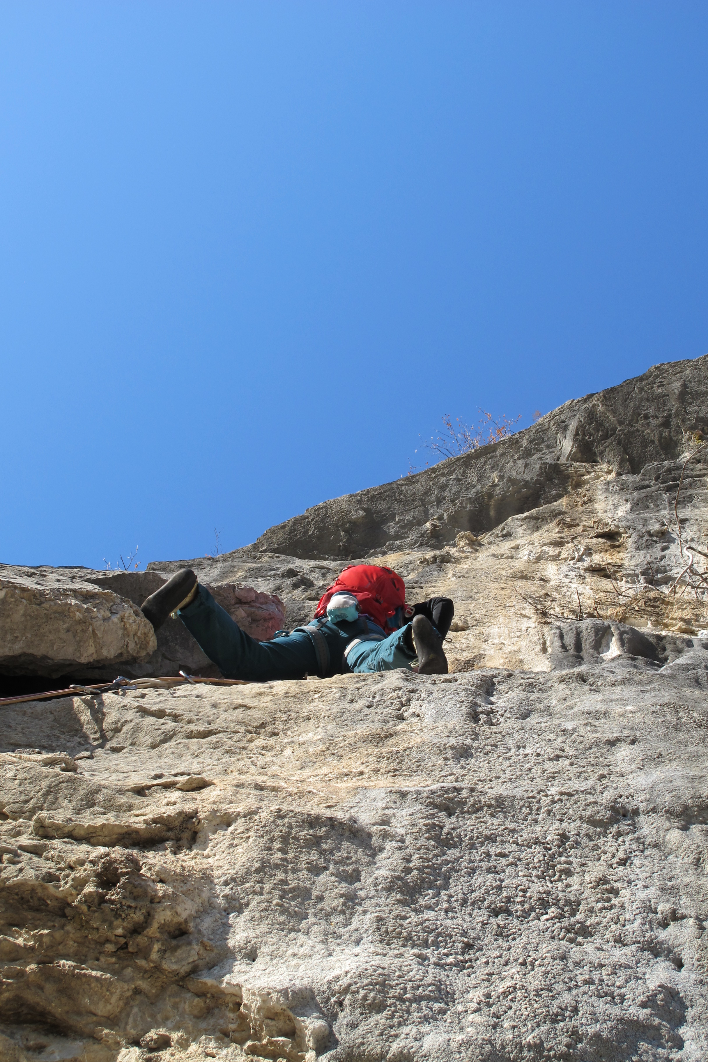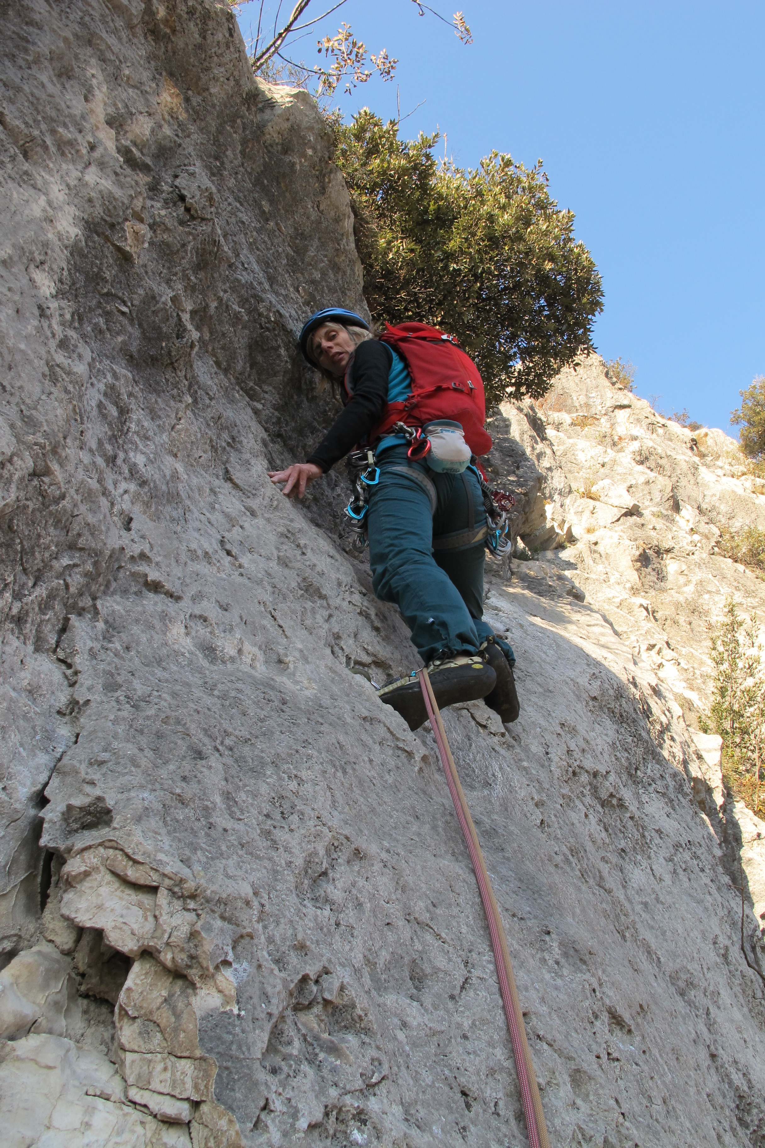 Gefahreneinschätzung: Alpine Tour, Stände gebohrt, Bohrhaken, Normalhaken und Sanduhrschlingen.
