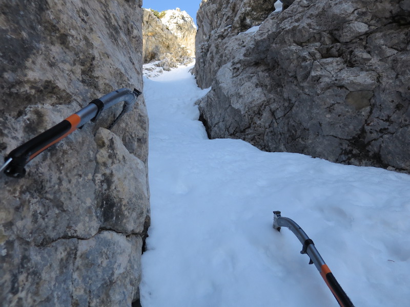Prognose: Weiterhin gute Bedingungen für Winterwanderungen, Klettersteige und ähnlichem. Selbst drüber am Mittenwalder Höhenweg liegt in den sonnigen Passagen kein Schnee. Nordseitig dafür pulvrig. Derzeit sicherlich kein Geschenk und wie die Gipfelrinne auch eher schweißtreibend.
