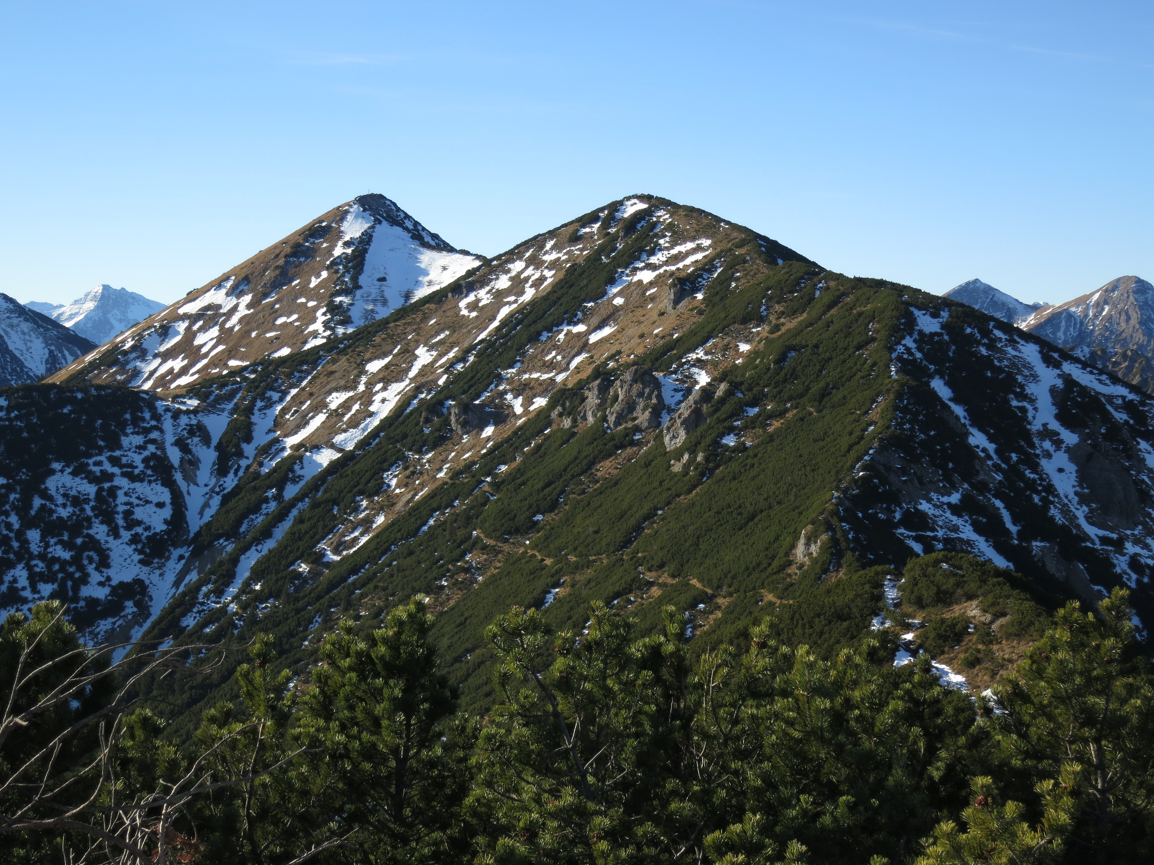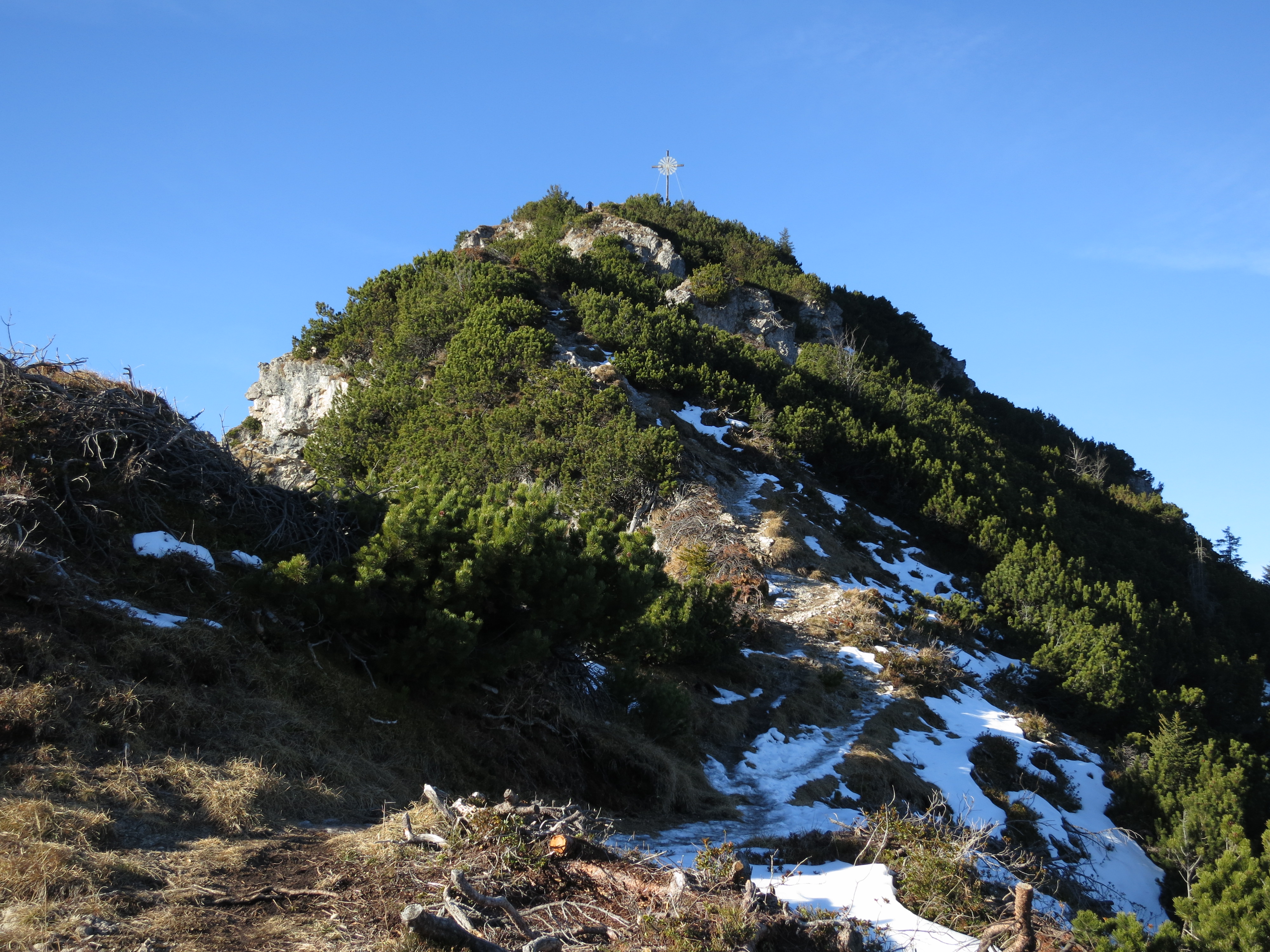 Tourenverhältnisse: Aufstieg über Gießenbacher Weg und Brünstlkreuz: Wege schneefrei und trocken (etwas glatte Schneereste nur kurz unterhalb des Brünstlkreuzes und im Übergang zum Brünstlkopf; aber doch gut zu gehen. Abstieg zum Joch zwischen Brünstlkopf und Zunderkopf und dann weiter südseitig auf anfangs unmarkierten Wegen. Später gab's dann einige rote Markierungen. Man erreicht die Brünstl-Diensthütte und dann die Forststraße, die von der Enningalm kommt: ab Joch alle Wege schneefrei und meist trocken. Bei diesem alternativen Abstieg ist etwas Orientierungssinn gefragt.