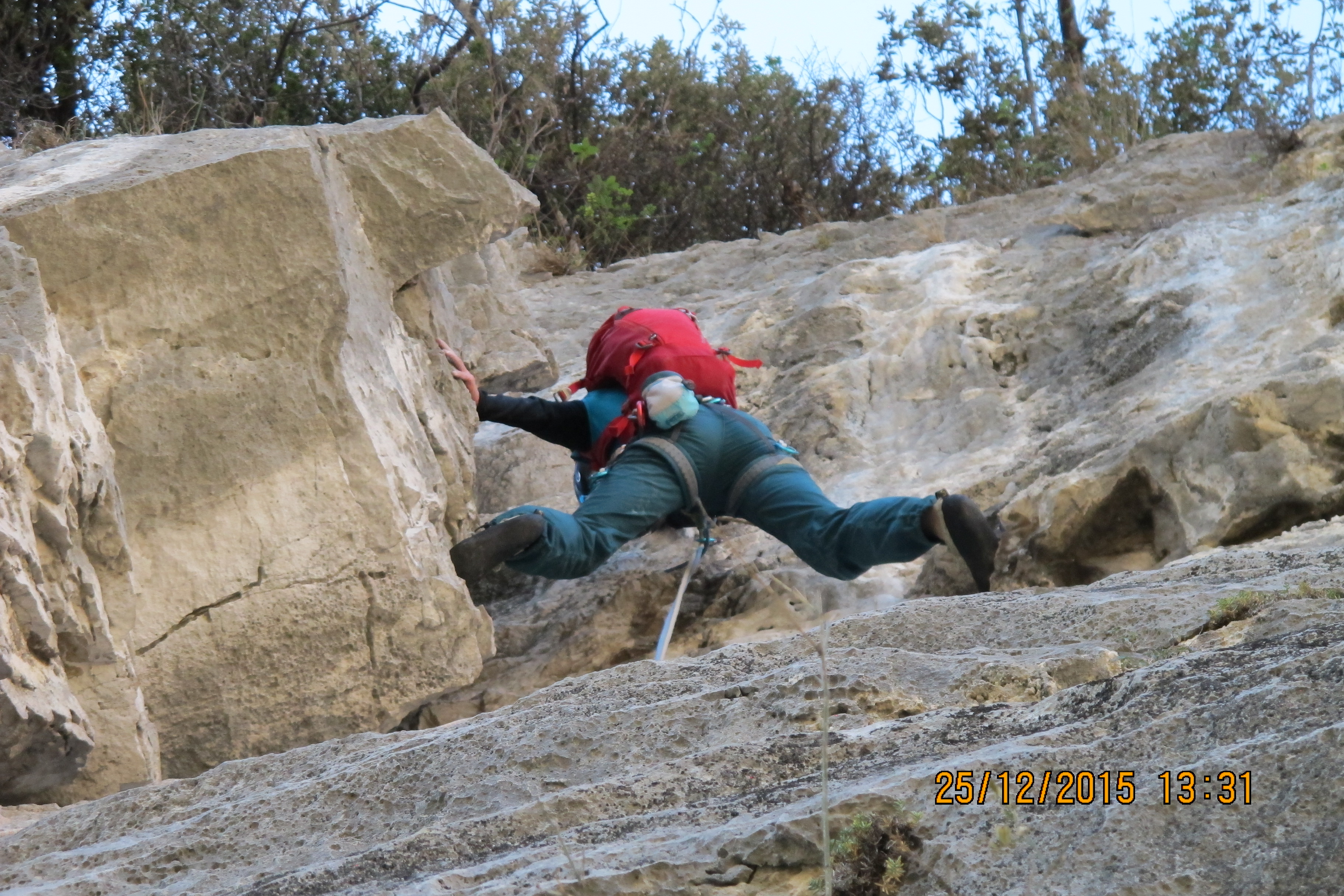 Sonstiges:Abstieg, nach Ende der Schwierigkeiten, fast 3 SL nach rechts queren, zum Klettersteig(mittlerweile auch mit Haken gesichert) Es empfiehlt sich bis zum Klettersteig am Seil gesichert zu queren. Wir sind über den Klettersteig zum Colodrigipfel und über Lagel und Arco(wg. WB) zurück zum Auto
