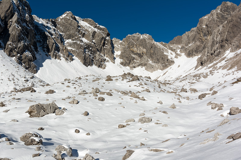 Wollte eigentlich zum Luxnacher Sattel. Der war aber im Schatten und recht zugig, daher bin ich einfach weiter in in Sonne bis ca. 2200m im Sattelkar.