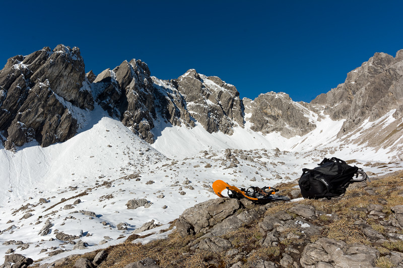 Tourenverhältnisse: bis zur Haglertalhütte komplett schneefrei. Ab ca. 1500m Schneereste, ab 1700m waren die Schneeschuhe angenehm. Bis 1800m hätte man sich vom Sattelkar mit Ski runtermogeln können. Aber übelster Bruchharsch im Haglertal (siehe Foto).