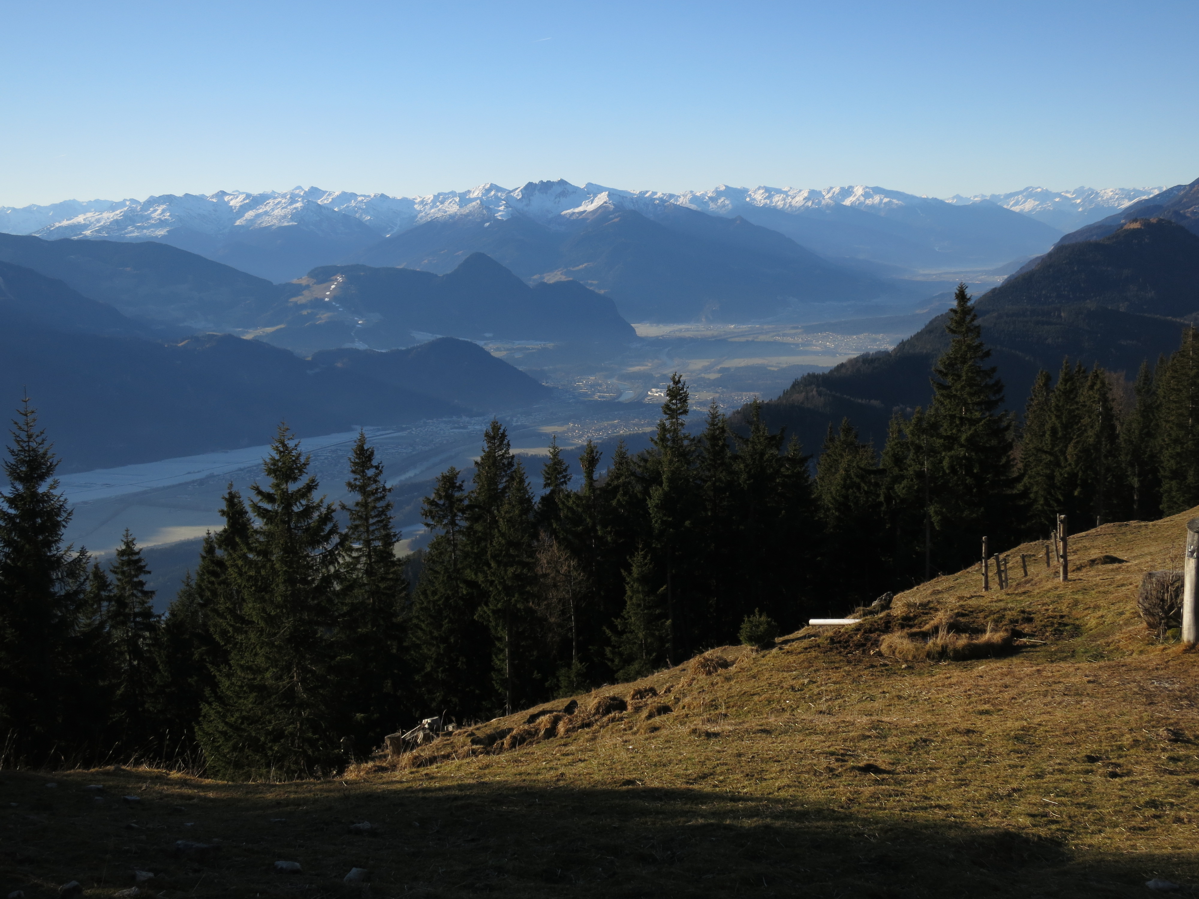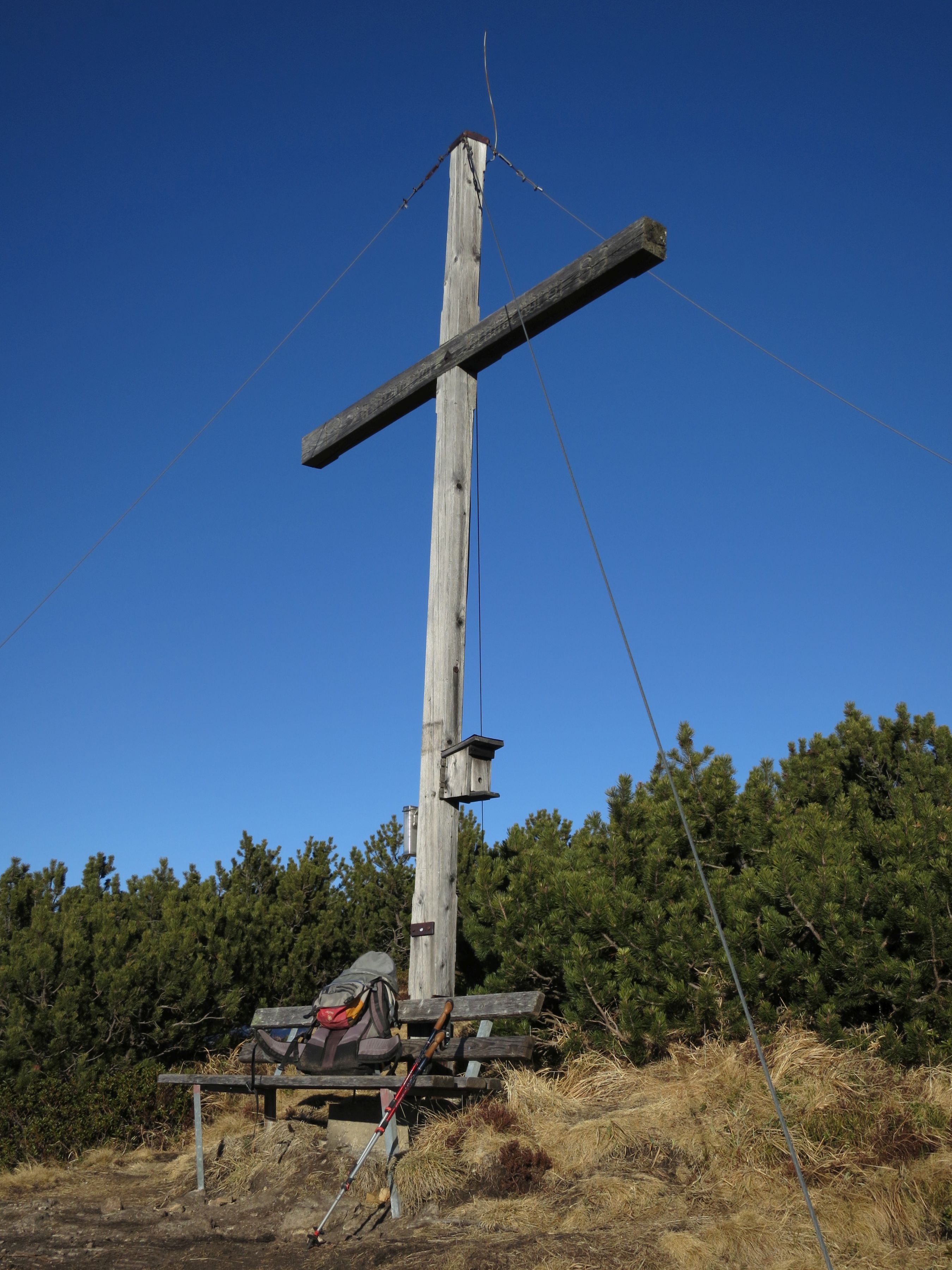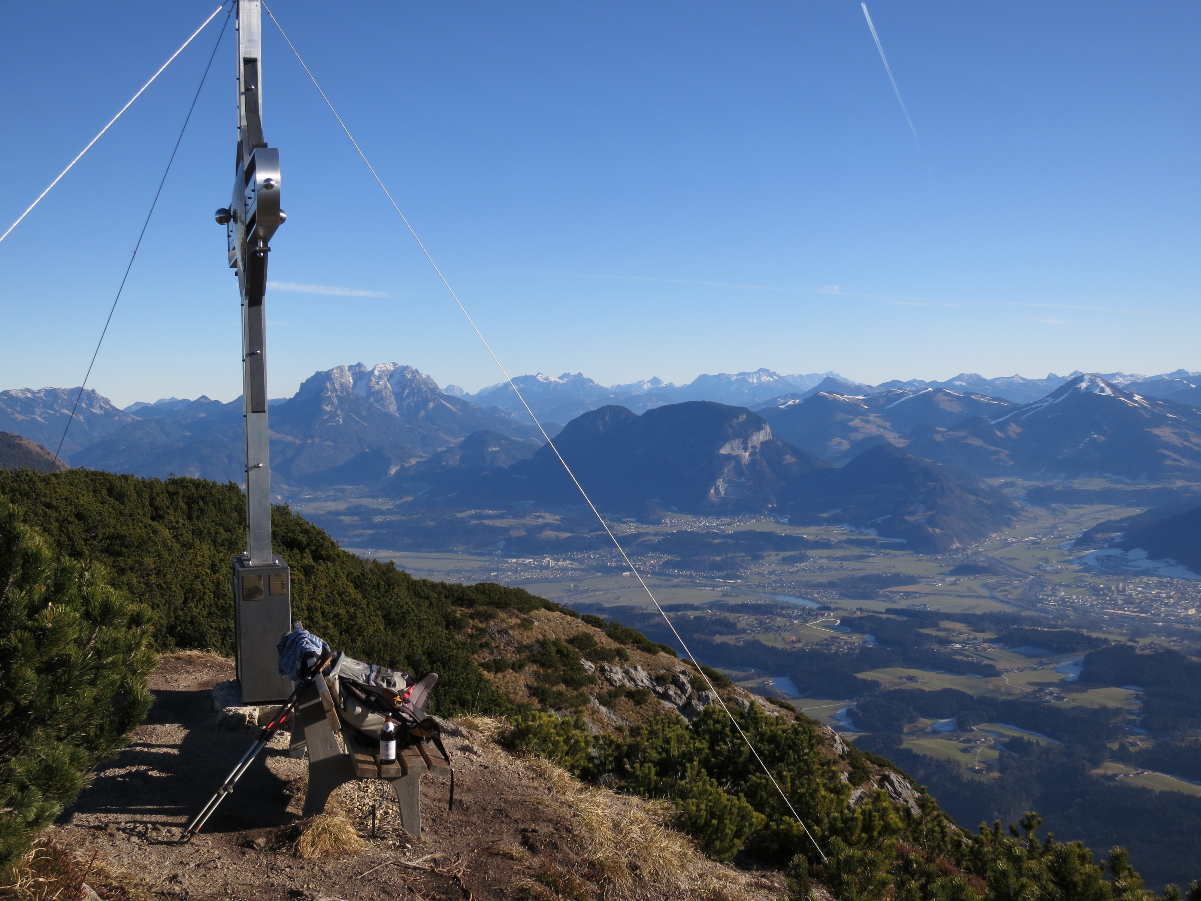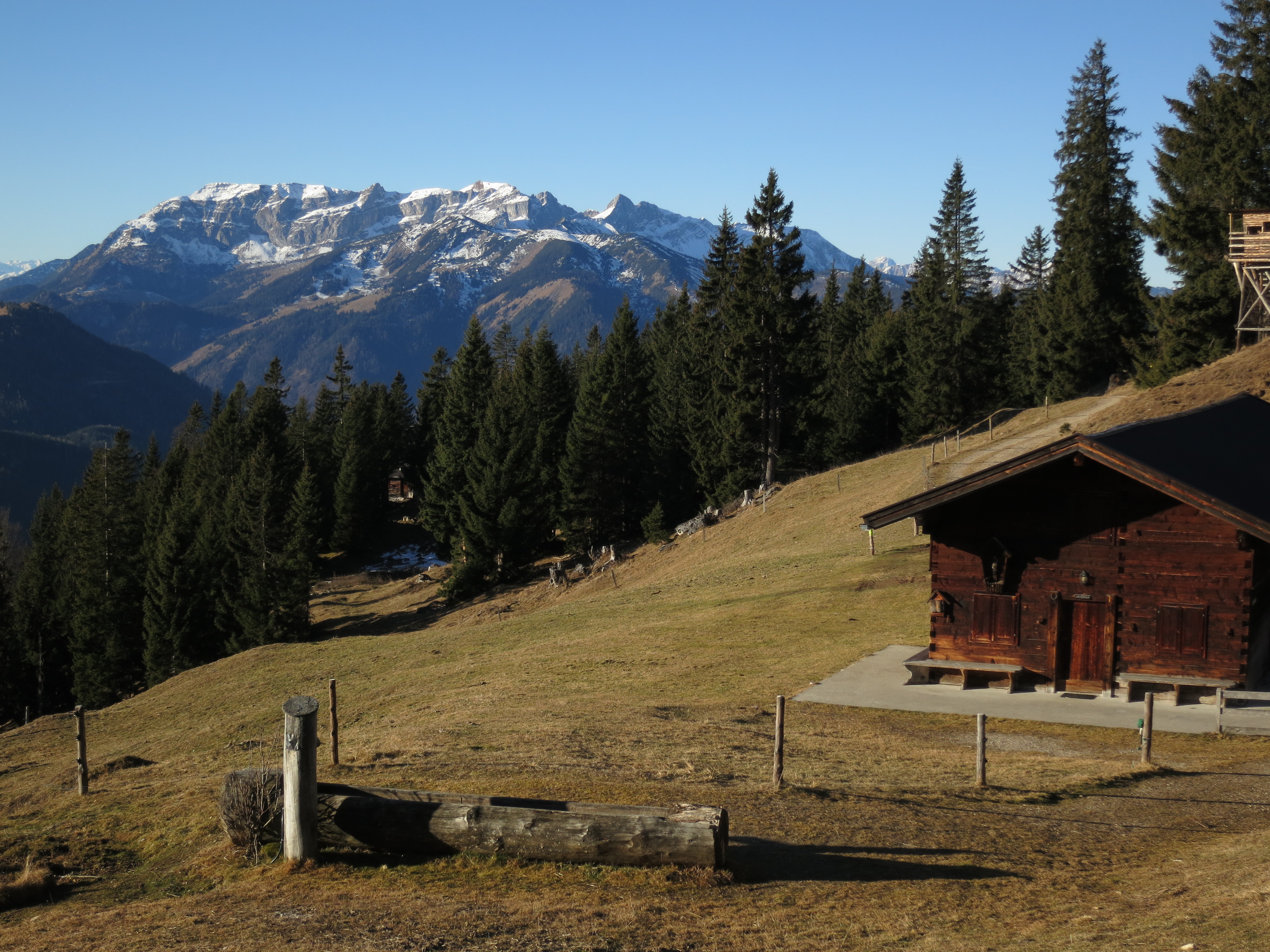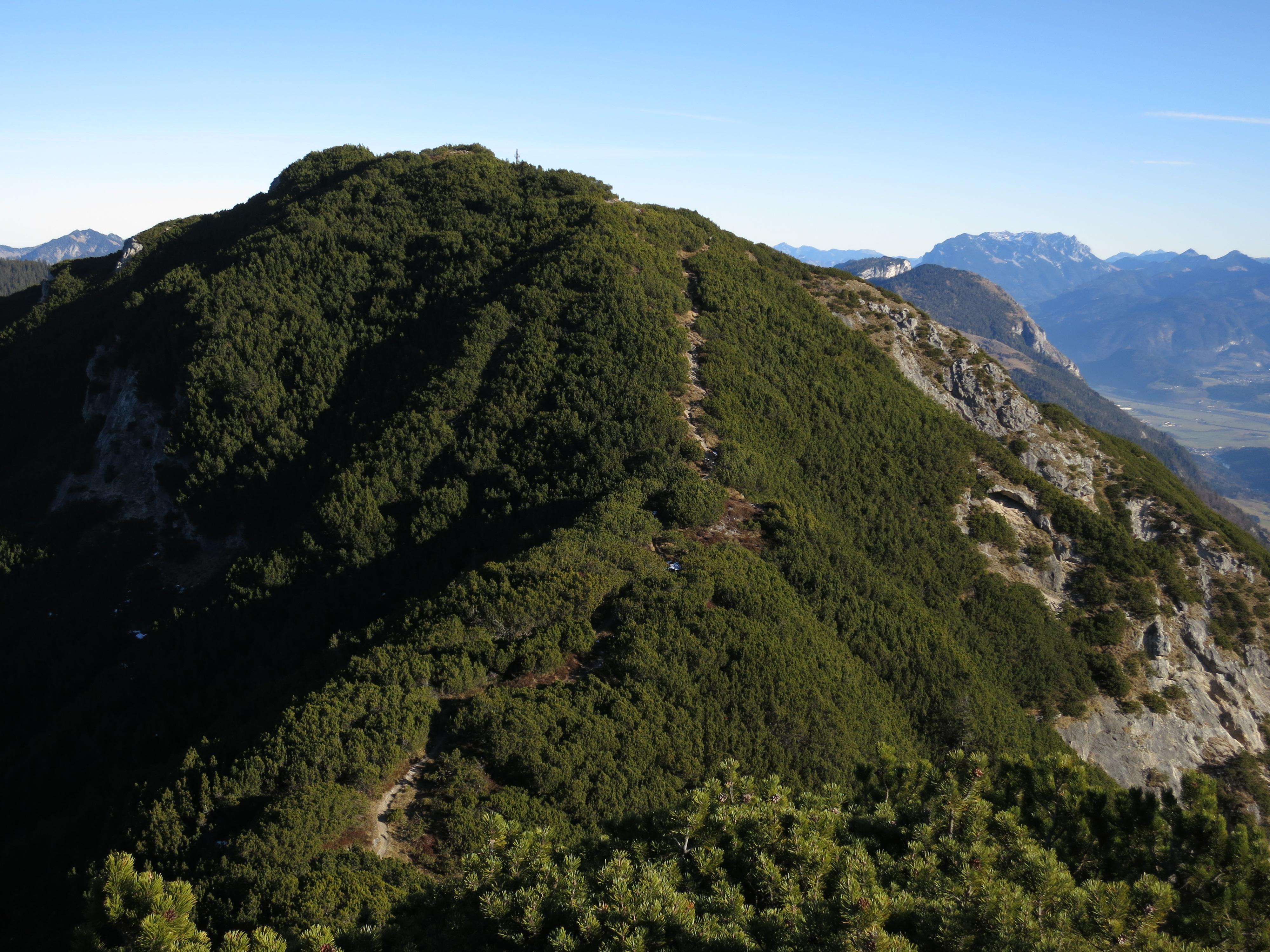 Tourenverhältnisse: eine traumhafte Wanderung. Aufstieg über Jocheralm (Alter Steig) und Gratweg bis zum Heuberg schneefrei und trocken. Der Übergang zum Plessenberg war im Abstieg (Ostseite) vom Heuberg an ein paar Stellen etwas eisig. Der Weg vom Plessenberg zum Kienberg war in der ostseitigen Querung in der Flanke des Heubergs schneeglatt/eisig. Der Gipfelaufstieg zum Kienberg und der Rückweg über den Gratweg war wieder schneefrei. Heute war es nochmal relativ mild und kaum windig bei bester Fernsicht.