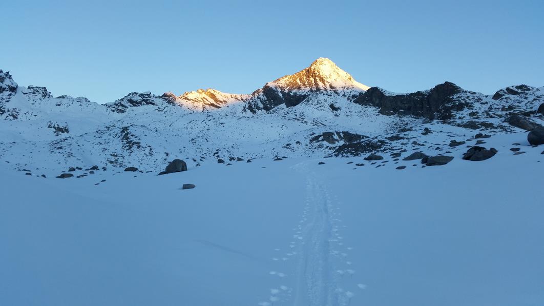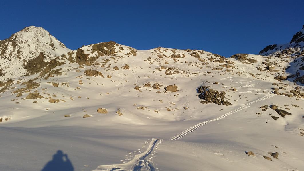 Ab Parkplatz Krummgampental (2400m) sehr wenig Schnee. Ca. 25 cm feiner Pulver stellenweise ohne Unterlage. Im Aufstieg gut machbar. 2 mal Ski ca. 10m tragen. Abfahrt die ersten 150 hm Traumhafter Pulver. Danach Katastrophal zu fahren. Viel zu wenig Schnee. Nur leicht überdeckte Steine. Ohne Steinkontakt nicht fahrbar. Das Riffltal hat noch schlechter Ausgschaud. Trotzdem Landschaftlich herrlich.