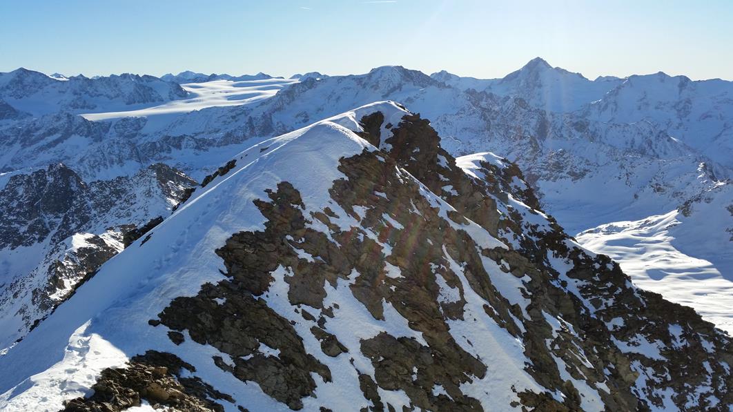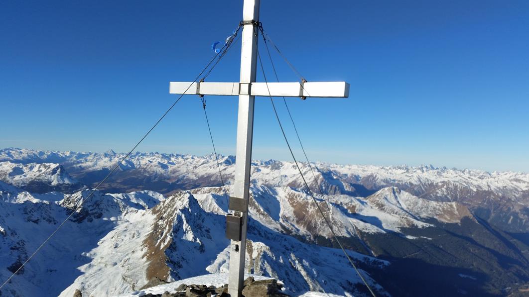 Route : Vom Parkplatz „Krummgampental“ geht man in westlicher Richtung taleinwärts und zunächst längere Zeit flach oder leicht ansteigend im Talgrund dahin. Bis gut 2800m hält man dabei noch direkt auf den Glockturm zu. Nach einer kurzen Steilstufe bei etwa 2800m wendet man sich im welligen Gelände nun aber deutlich Richtung Nordnordwesten (evtl. sogar kurz Nord). Über eine nach links hinaufziehende rampenartige Mulde unter dem Habicht (3094m) steigt man in zunehmender Steilheit in die Einsattelung zwischen Habicht und dem vom Glockturm in südöstlicher Richtung herabziehenden Rücken hinauf. Von der Einsattelung linkshaltend oberhalb des Rifflferners hinauf und zum Ansatz des steilen Nordostrückens des Glockturm. Hier Skidepot. Zu Fuß steil die letzten Höhenmeter bergan und über einen sehr kurzen und etwas ausgesetzten waagrechten Grat zum Gipfelkreuz.