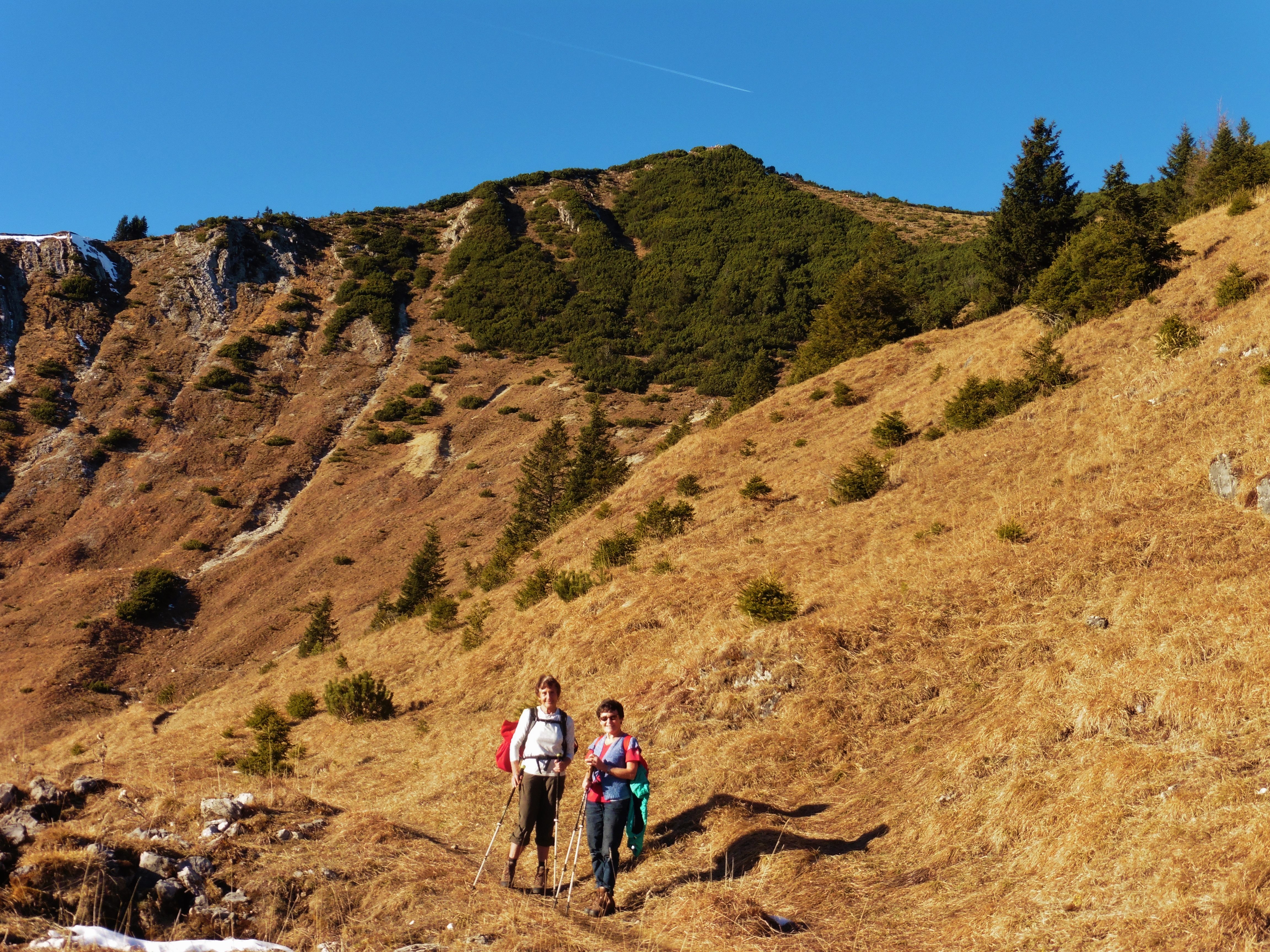 Tourenverhältnisse: ausgezeichnet; trockene Wege; im oberen Teil einige teils harte / eisige Schneeflecken, die aber nicht weiter stören;