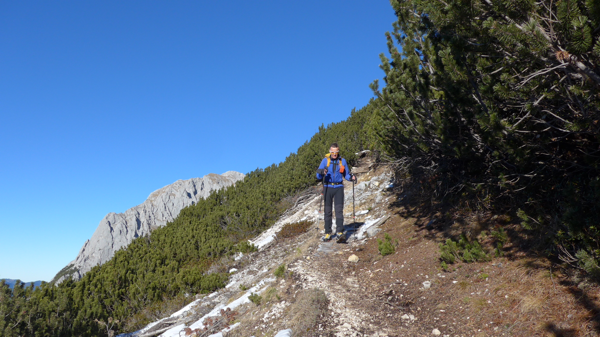 Abstieg zur Brunnsteinhütte eisig, hier sind vielleicht ein Stück weit Steigeisen angenehmer. Schneller?