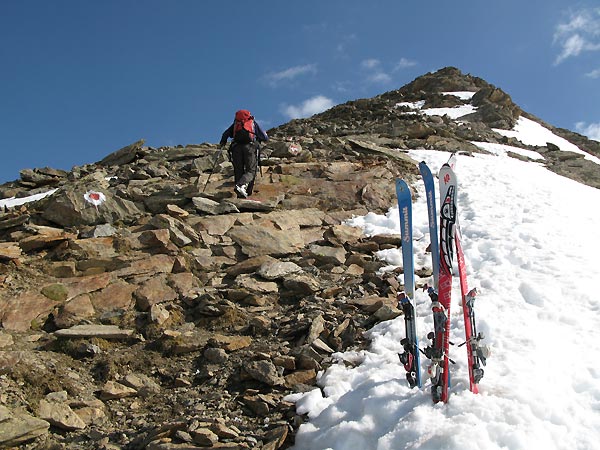 Der Gipfelanstieg über den Südgrat ist bereits aper - hier Verhältnisse wie im Sommer!
