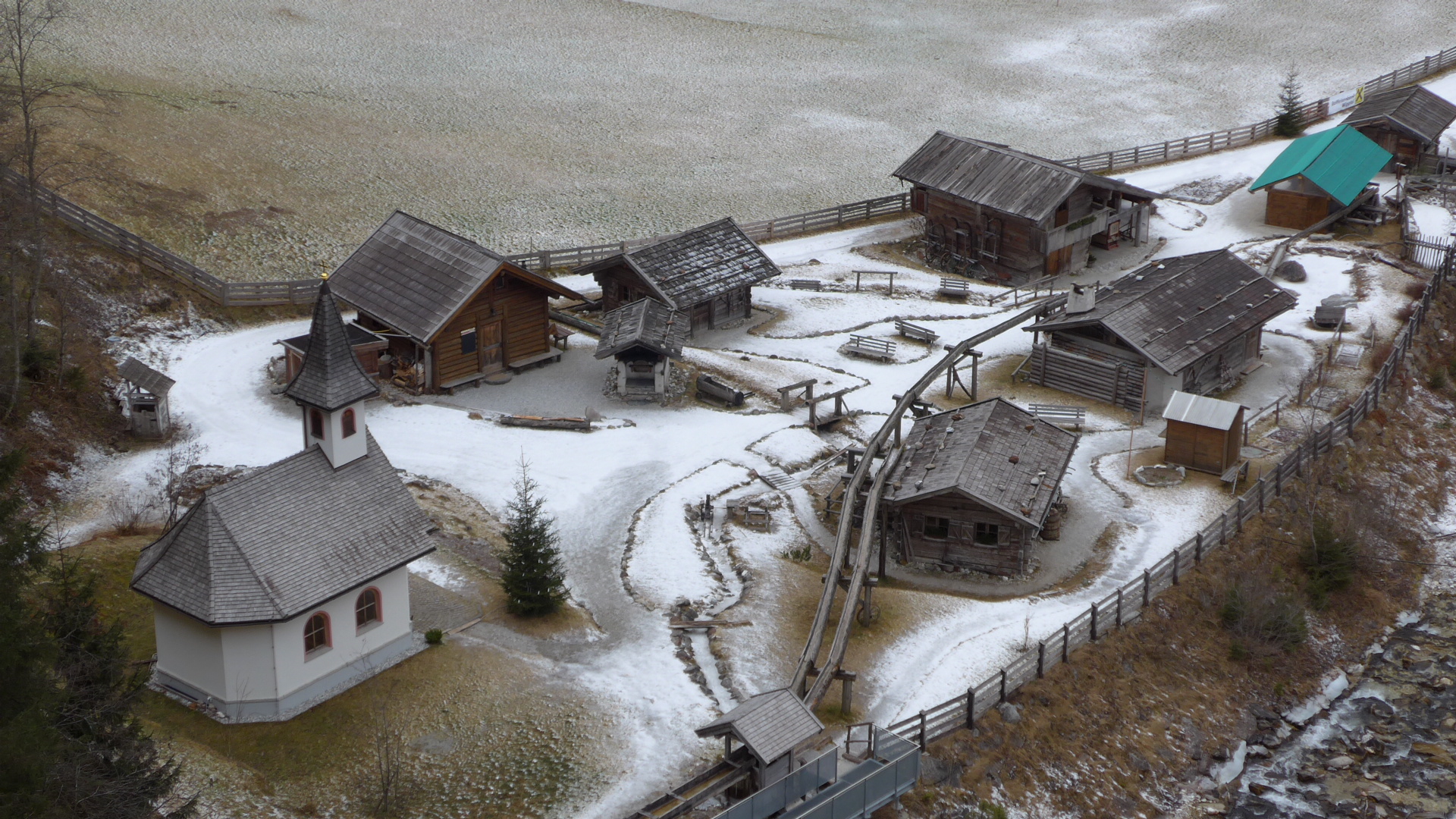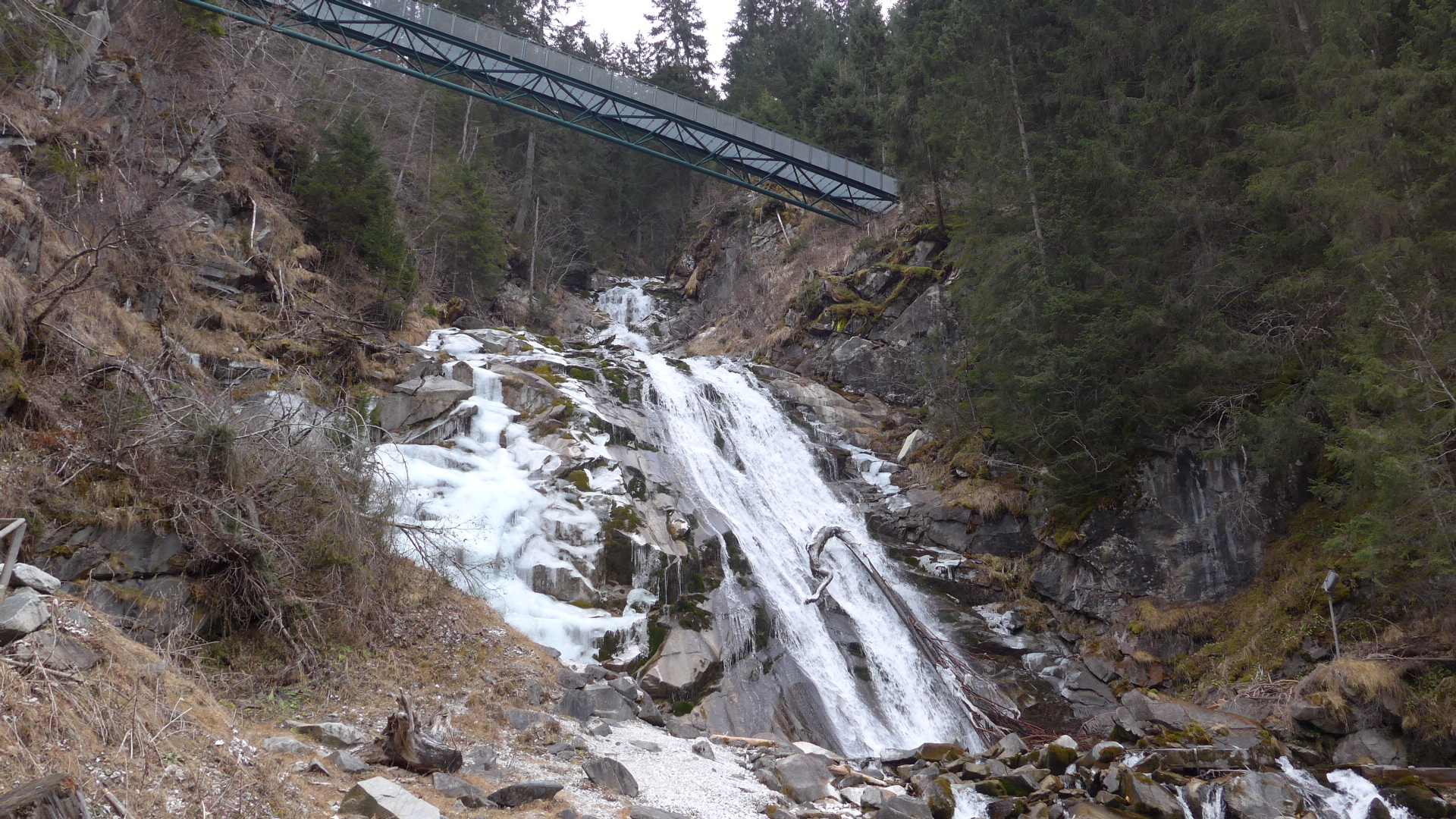 Tourenverhältnisse: Vorbei am Mühlendorf (Bild) östl. vom Sandesbach (schneefrei) hinauf auf abwechslungsreichem Weg zur Tribulaunhütte (15 cm Schnee).