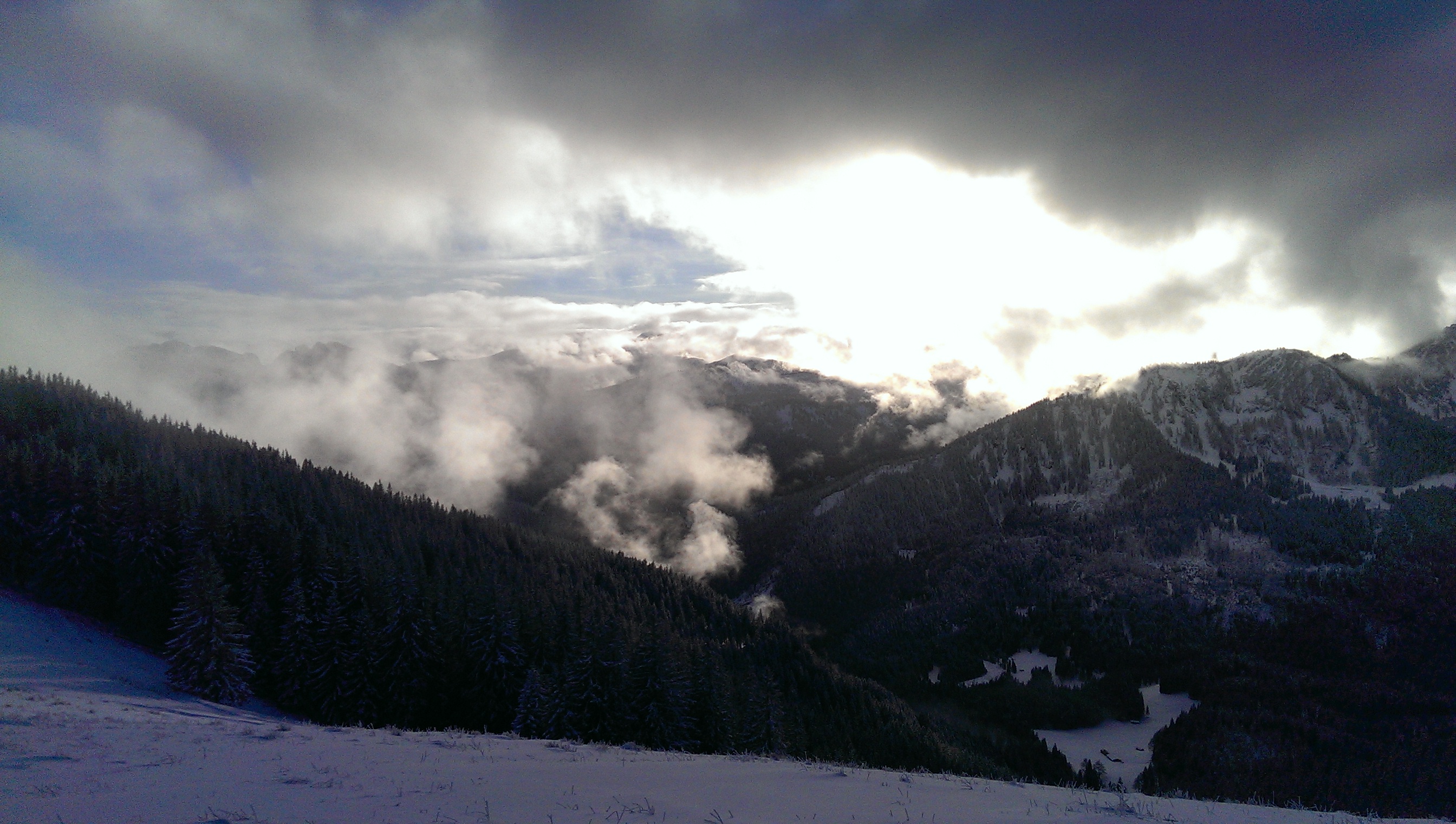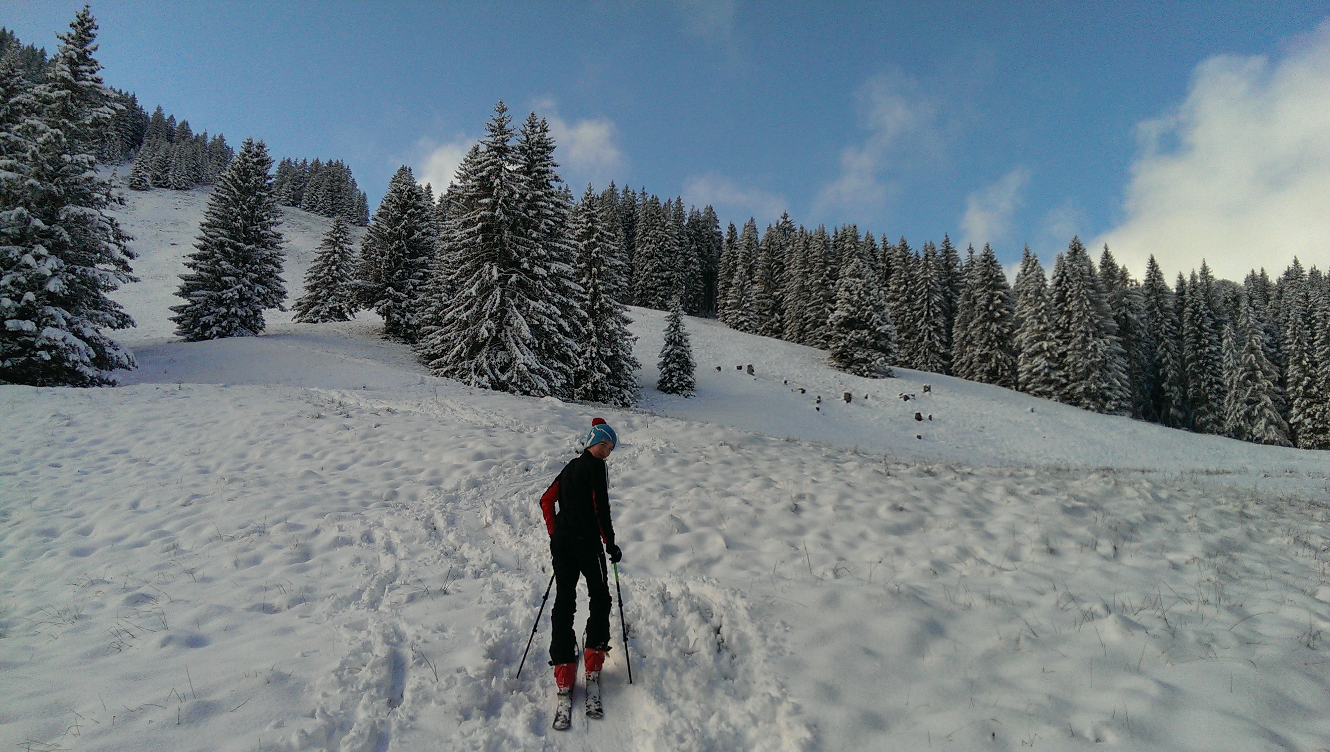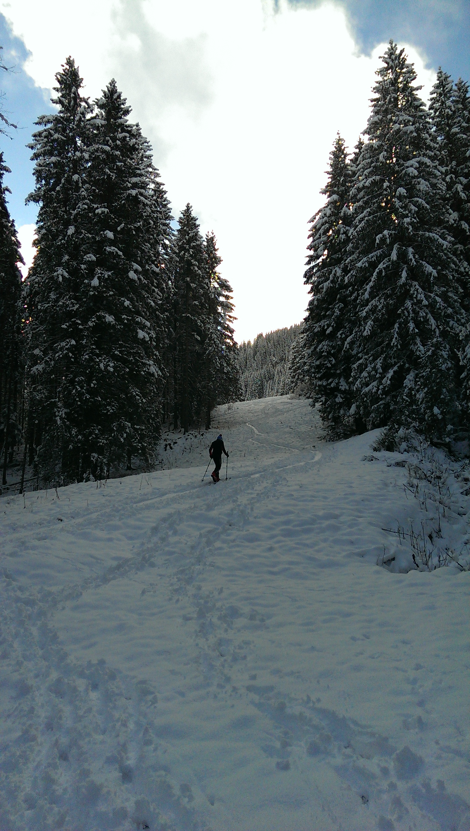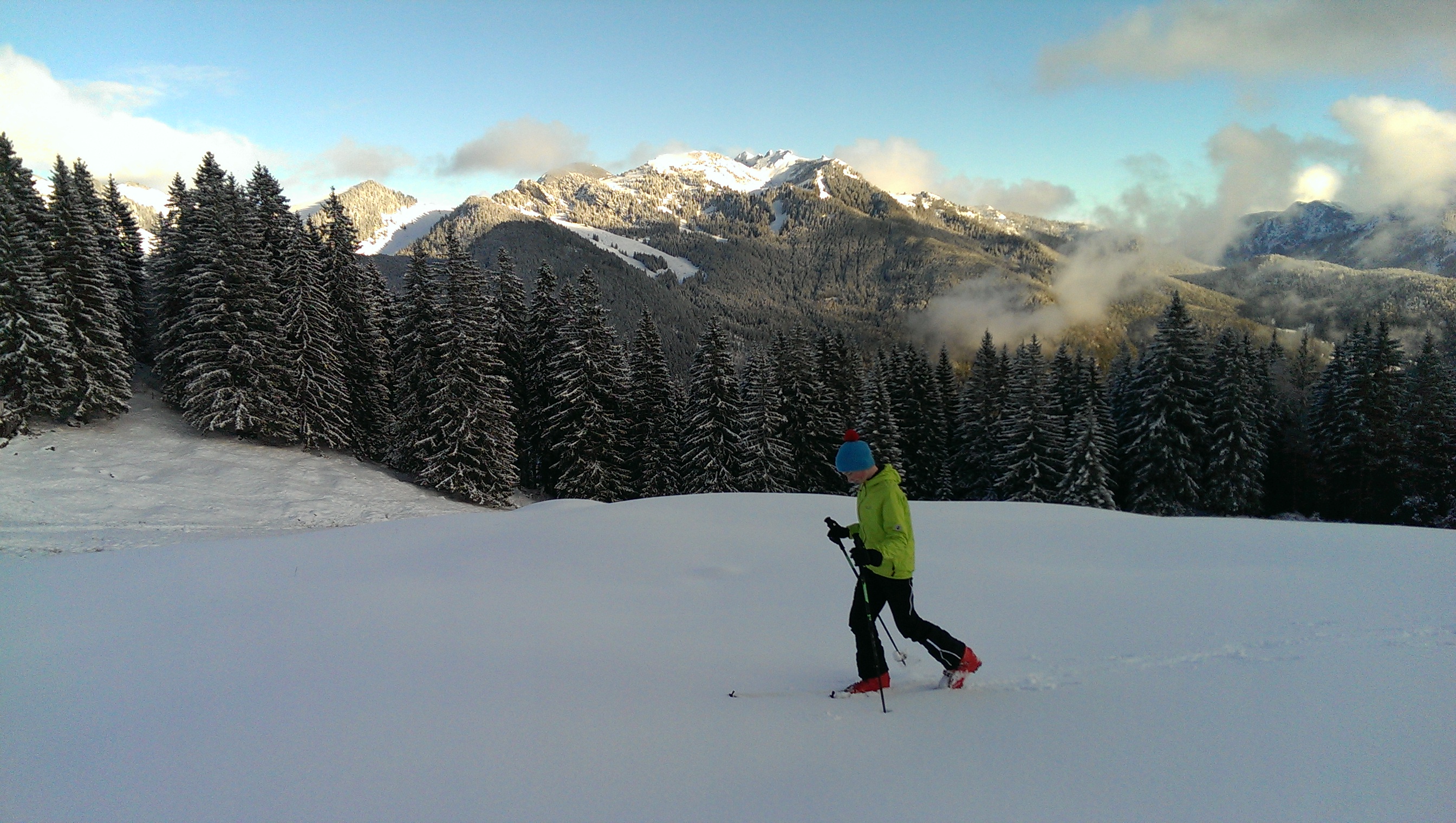 Tourenverhältnisse: Für diesen Winter fantastische Verhältnisse! Das heißt, es gibt jetzt ca. 20 cm Neuschnee im Gelände. Das reicht natürlich nicht, um abzufahren, aber um aufzusteigen schon - und es schaut zumindest winterlich aus.