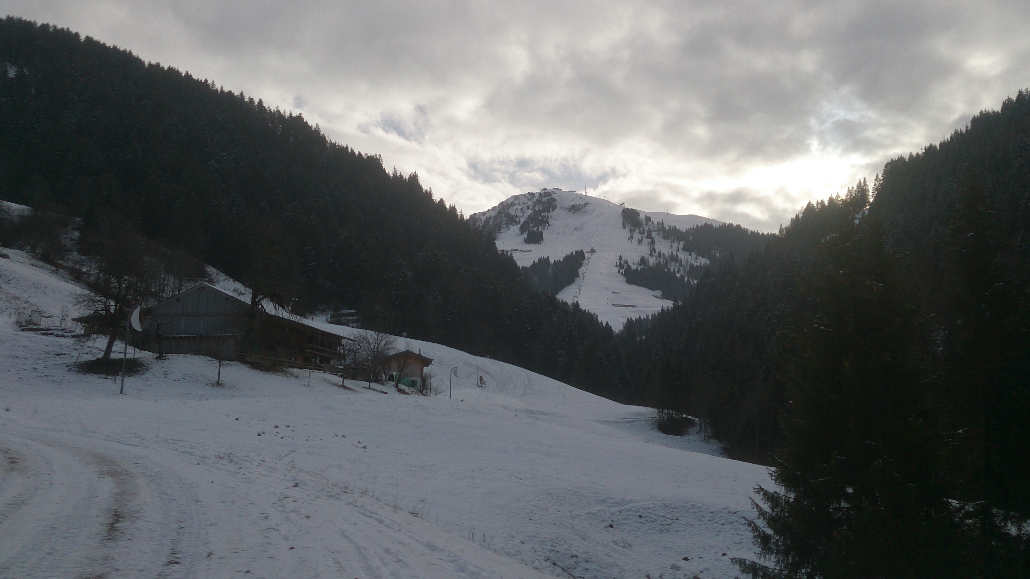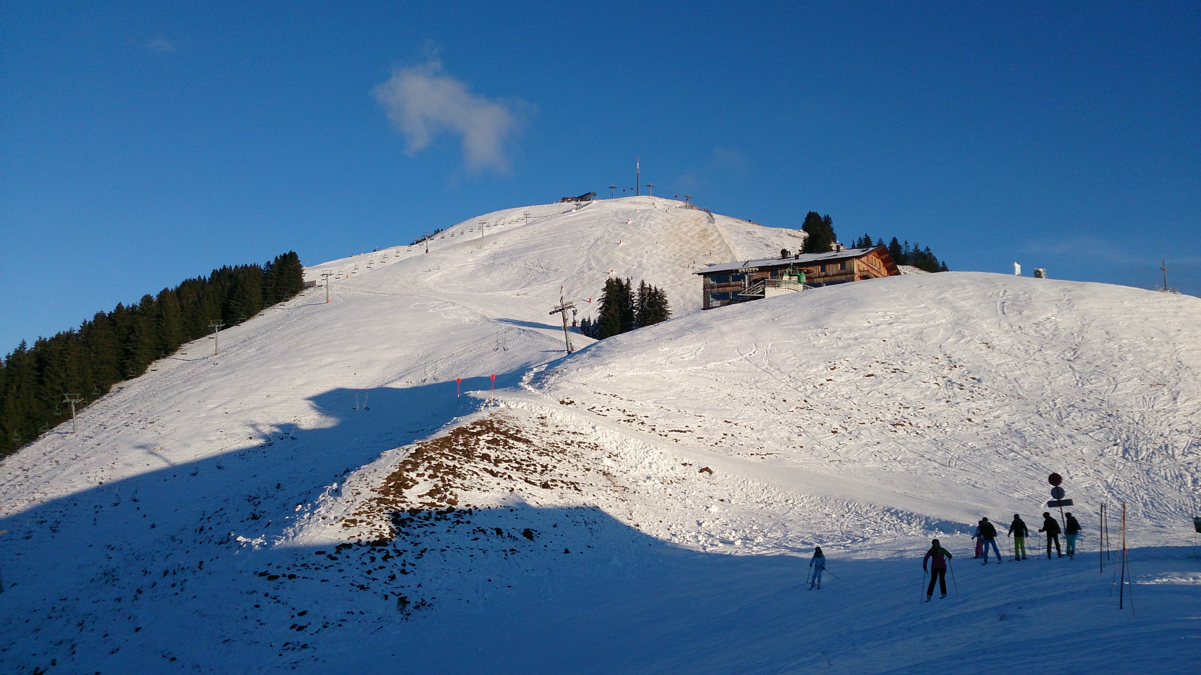 Tourenverhältnisse: Wenig Schnee. Aufstieg über die blaue Piste / Rodelbahn von der Talstation weg, es gibt aber immer wieder apere Stellen und die Schneedecke ist nur hauchdünn - bei der nächsten Erwärmung ist der Schnee da möglicherweise schon wieder weg. Beschneit wurde hier noch nicht größer. Ab Hochsöll kommt man in das geöffnete Skigebiet. Hier mehr Schnee, Aufstieg über Kraftalm und Alpengasthof Rigi zum Gipfel möglich, am Pistenrand und teilweise auch etwas abseits. Diese Route ist nicht ganz so steil wie der direkte Anstieg über den N-W-Hang. Wetter war heute recht passabel, ebenso die Fernsicht.