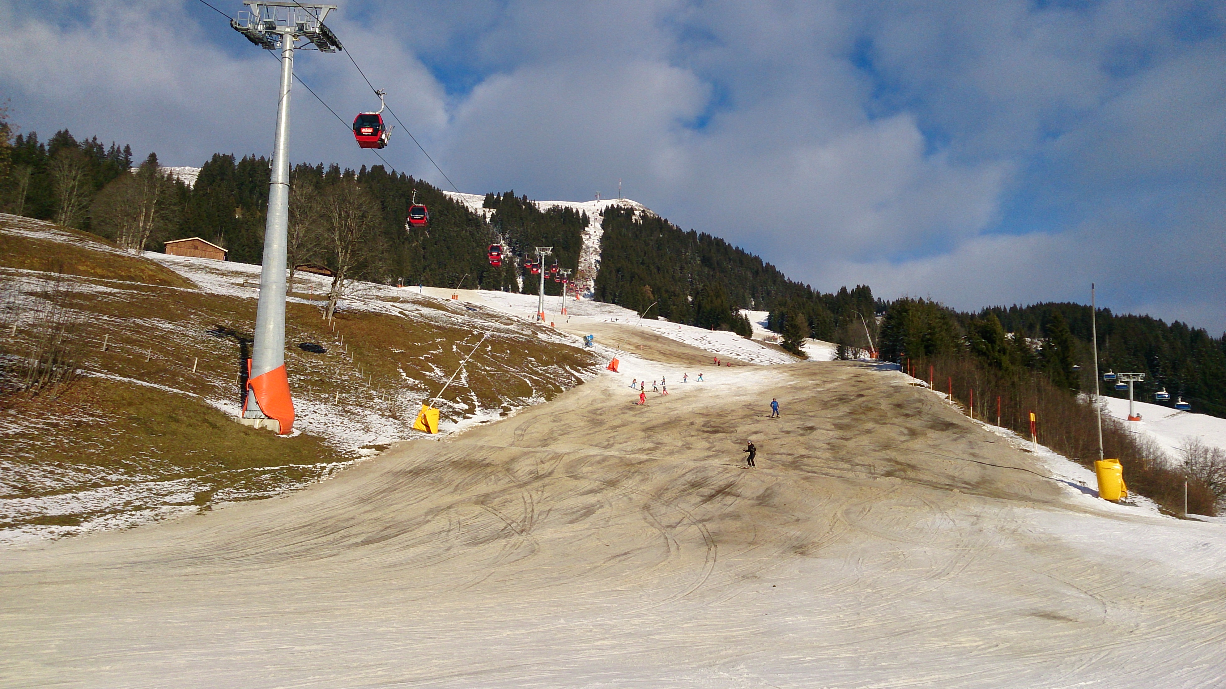 Prognose: wird ohne Neuschnee nicht besser, beschneit werden zur Zeit scheinbar fast nur die ohnehin geöffneten Pisten im oberen Teil