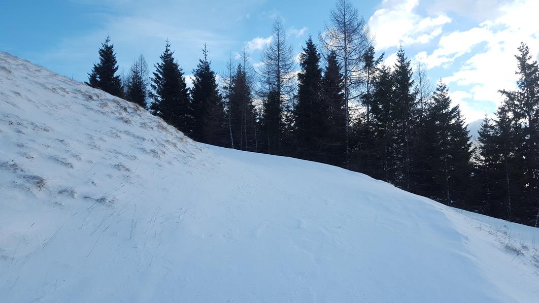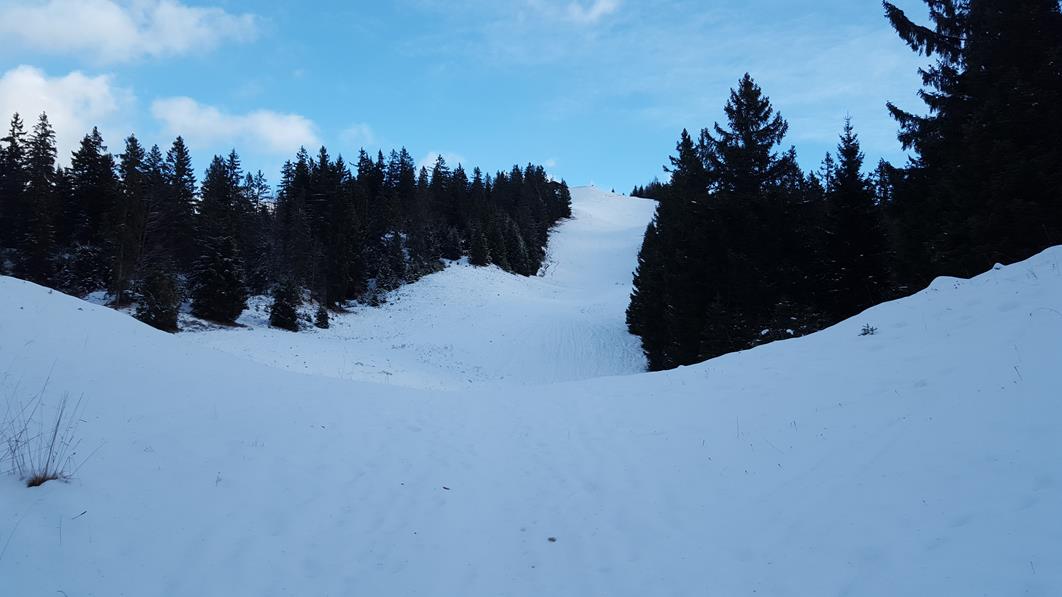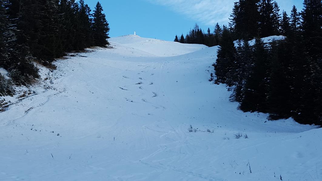 Aufstieg griffig. Ab (1200m) hats ca. 5cm Neuschnee, darunter hats geregnet. In der Abfahrt gut zu fahren. Wo’s steiler wird kommt weiträumig die Wiesn durch. Dennoch ohne gröbere Steinkontakte machbar. Skibetrieb noch geschlossen. Abfahrt ohne Kunstschnee.