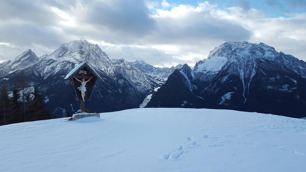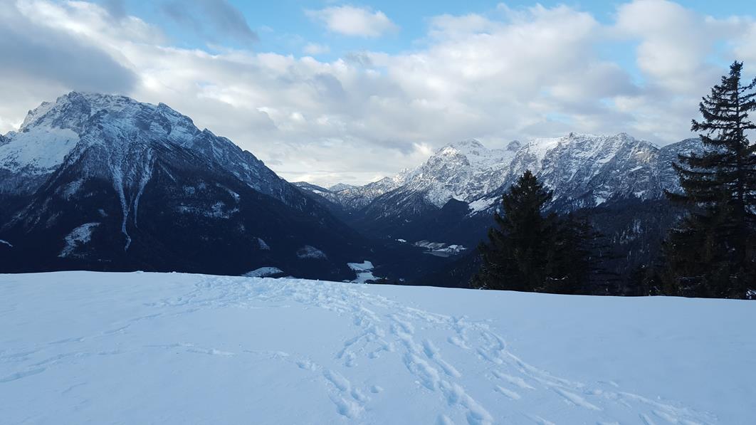 Route: Start am Parkplatz Hochschwarzeck (1040m), beim Ende der Rodelbahn. Dann der markierten Skiroute folgen oder über die steilere Piste zum Berggasthof Hirschkaser (1400m) aufsteigen. Bei mehr Schnne kann man auch direkt von Ramsau aufsteigen.