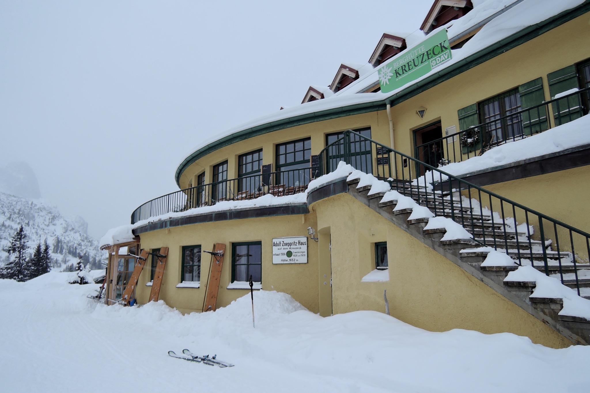 Sonstiges: Vom PP Hausbergbahn (700m) Richtung noch gesperrter Hornabfahrt und über selbige auf den Hausberg (1340m). Die runter fahren, bürsten den Rasen auf links… Vom Hausberg weiter über die Skiroute durch den Tourengeher-Tunnel und weiter zum Kreuzeckhaus (1652m).Runter am Drehmöser (1330m) vorbei über die rote Kochelbergabfahrt zurück. Immer noch gesperrt, aber es wird heftig beschneit…