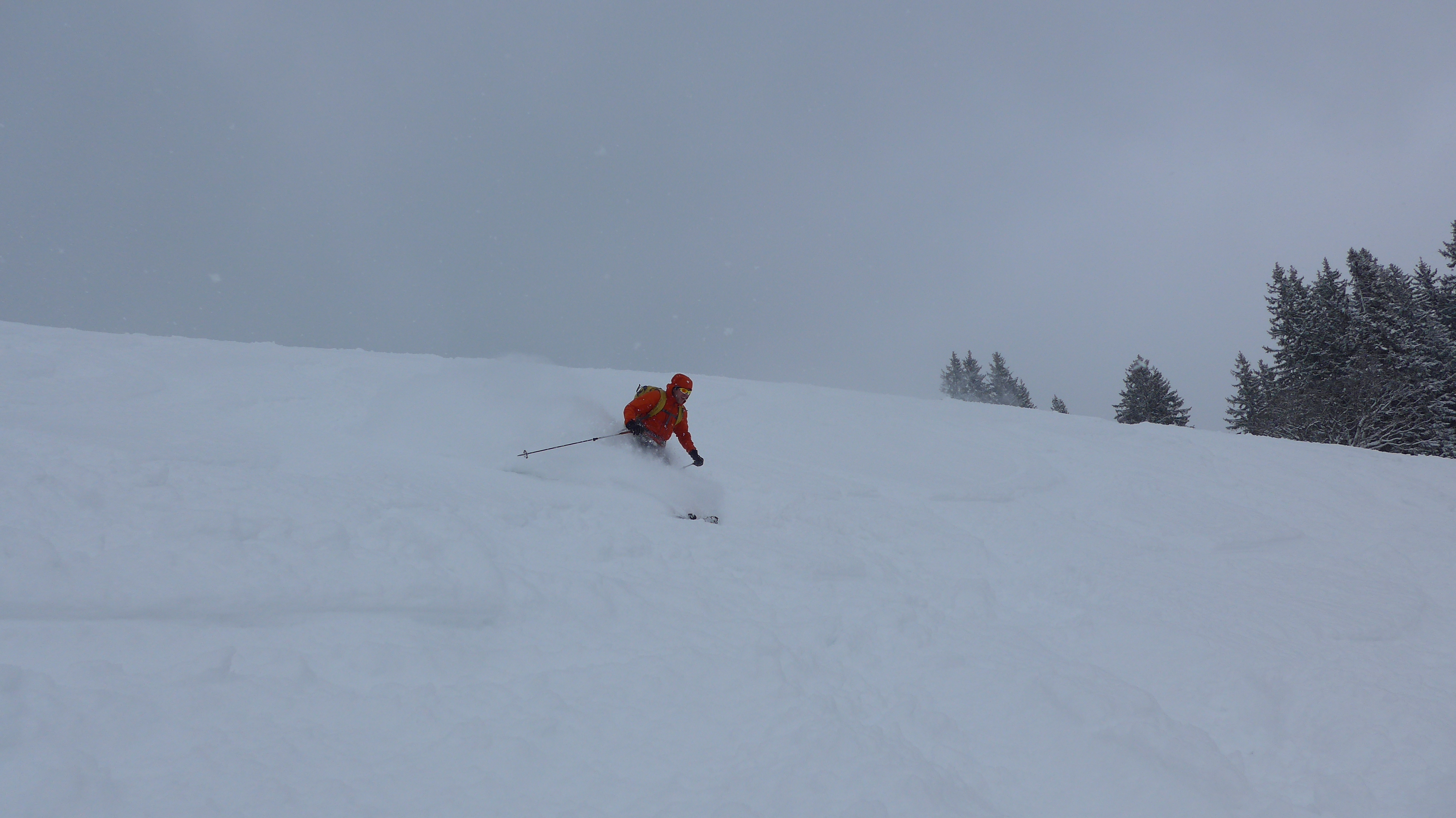 Oben noch etwas windverpresst, dann Pulver bis unten!