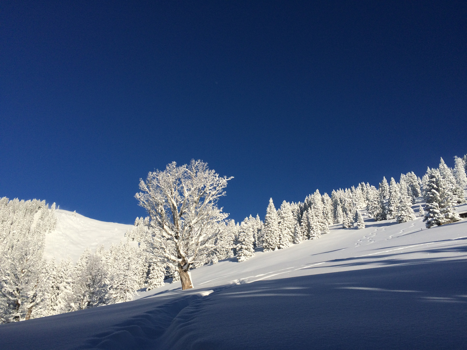 Prognose: Wenn die Temperaturen niedrig bleiben wie vorhergesagt und die Sonne heute die Oberfläche nicht angeschmolzen hat, dann geht das noch ein Weilchen. Von gestern gibt es ein paar Spuren, heute war auch nicht all zu viel los, so dass noch genügend Platz für eigene Spuren bleibt.