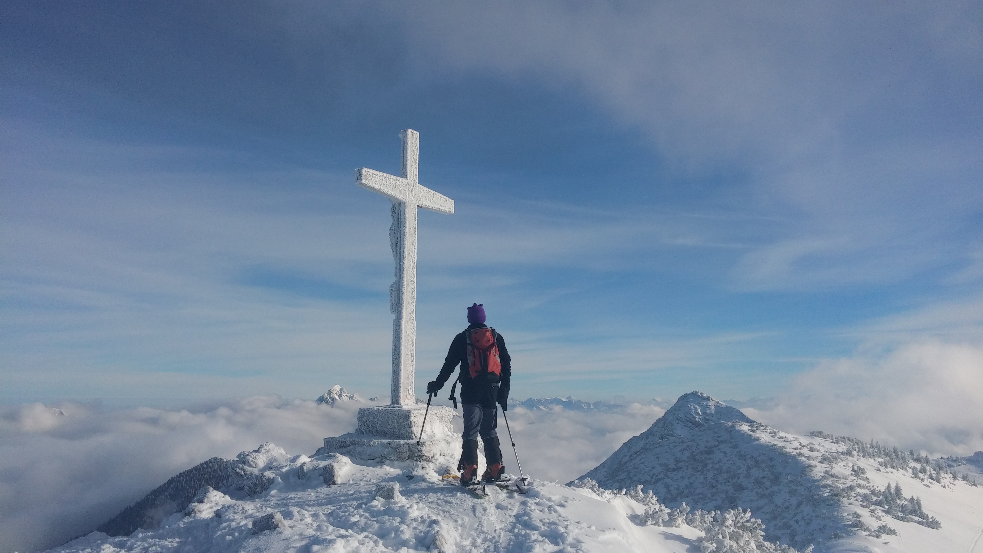 Oben eisiger Südostwind, aber inzwischen sonnig.
