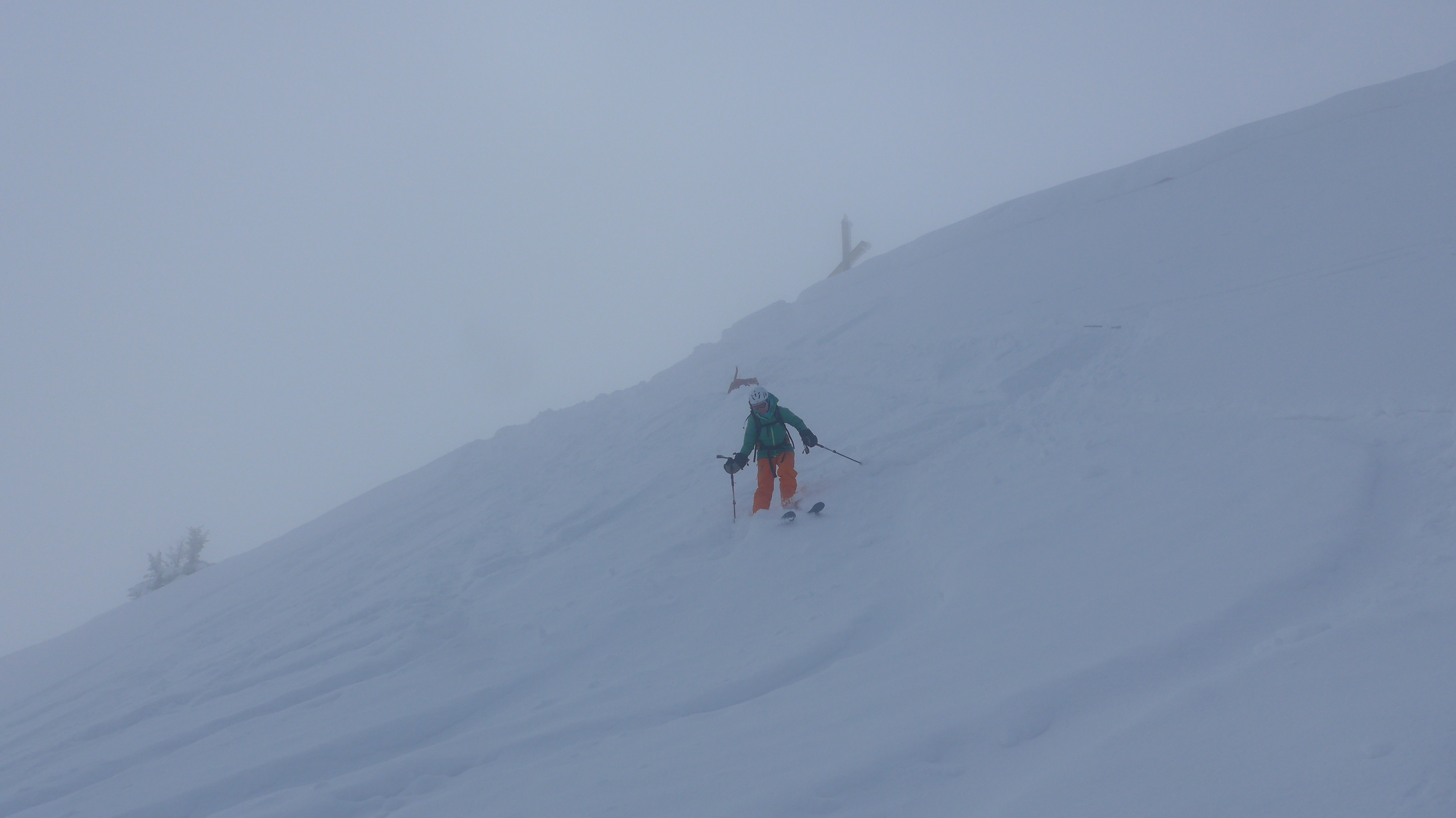 NÖ vom Seekarkreuz - Sattel zum Seekarkreuz Schneemaul (umgehbar). Mittlerweile z.T. 30 m Sicht. Der Wunsch verschleiert die Realität ... die Tour ist nur bei guter Sicht zu empfehlen. Am Gipfel keine Sicht in den Gipfelhang - also Abfahrt über den Rücken - Pulver. Am Sattel angekommen wurde die Sicht wieder besser... umgedreht ... flux nochmal aufgestiegen. O Gipfelhang feine lange Pulverabfahrt!
