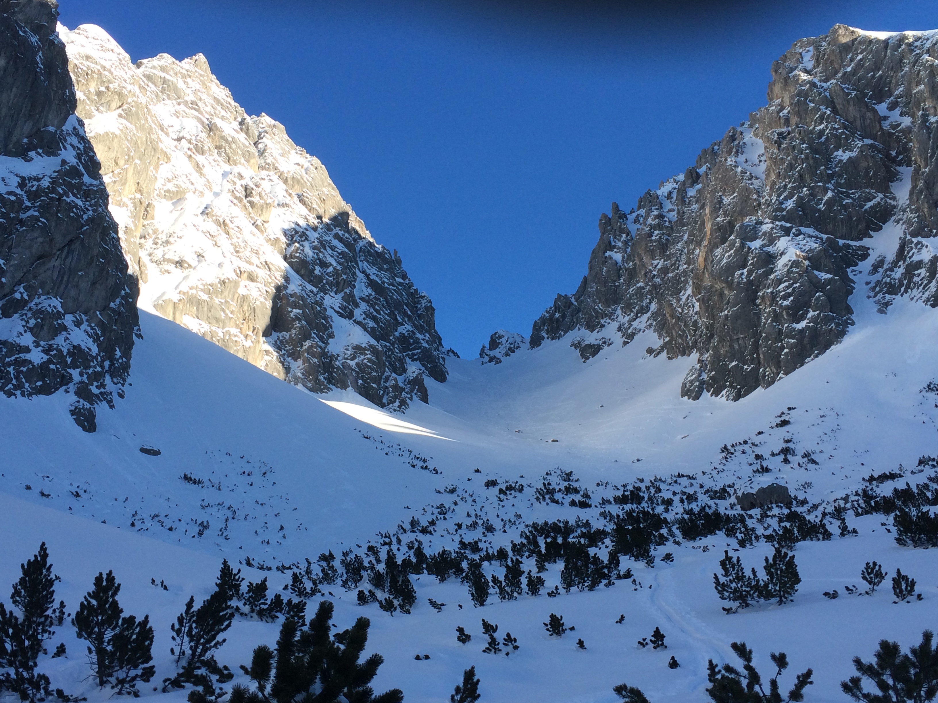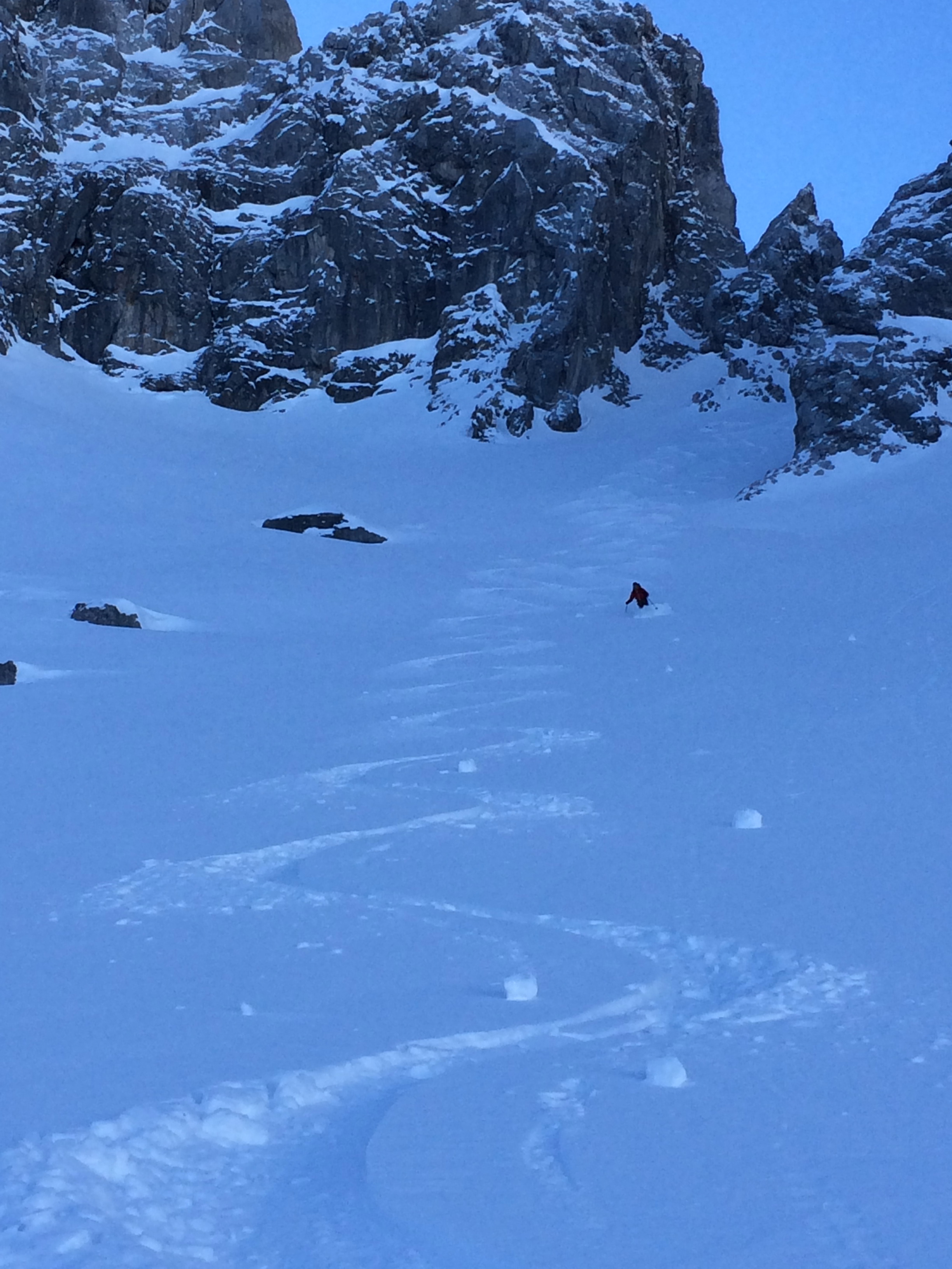 Tourenverhältnisse: Spitzenmäßige Verhältnisse: Massenweise Pulver, vom Hölltörl runter mit Spuren aber genug Platz für die eigene Linie und ab Grünsteinscharte unberührt.