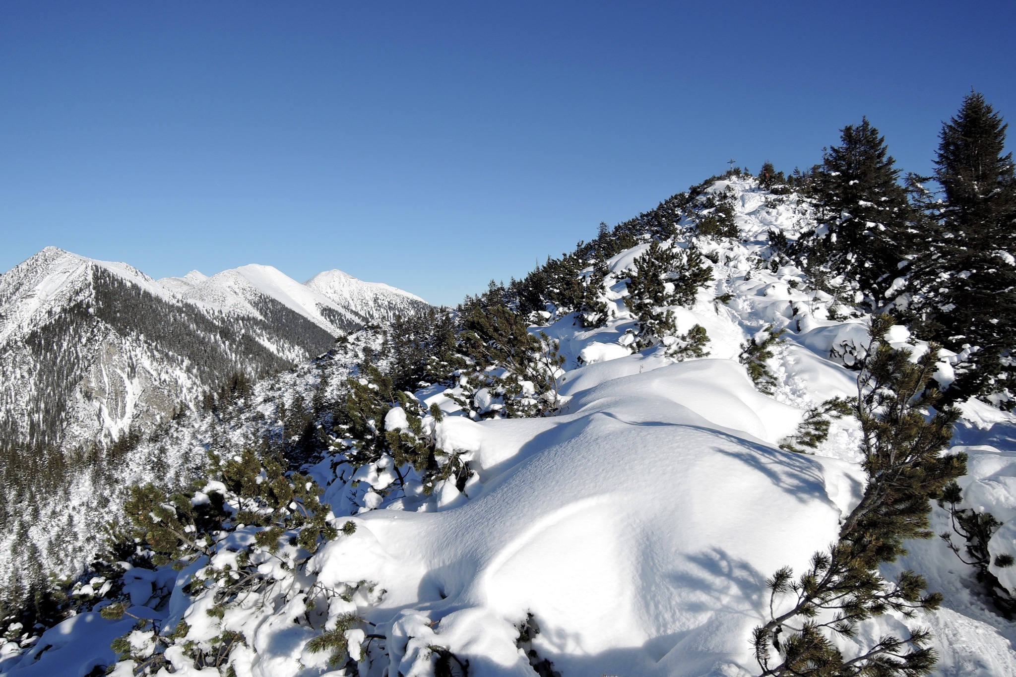 Runter über den W4 bzw. die Skiroute zur Esterbergalm (1260m) und weiter über den Forstweg bzw. Waldschneisen zurück zum PP.