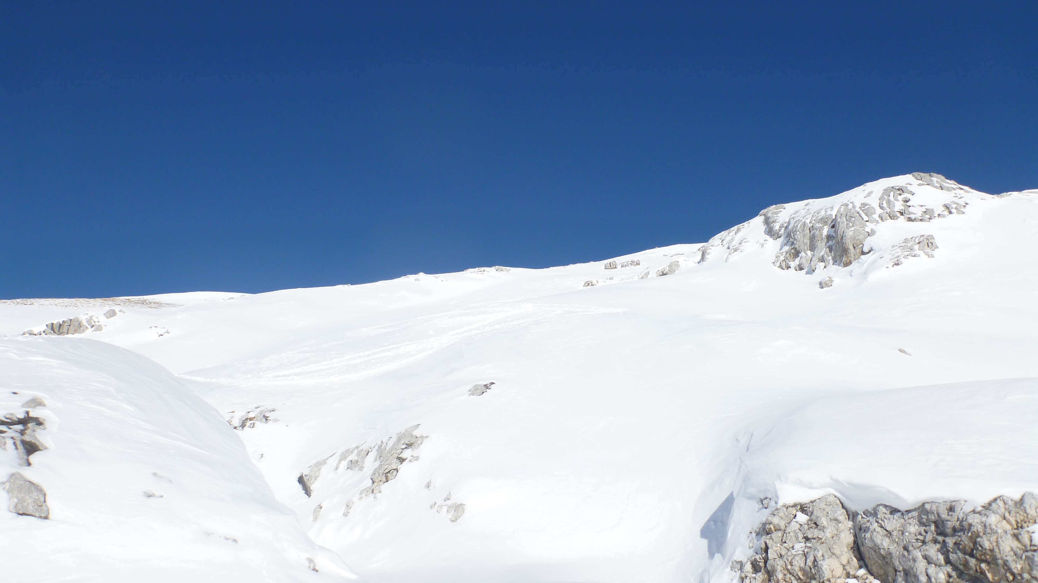 Tourenverhältnisse: super Schneeverhältnisse, Aufstieg zunächst über die Piste, in der ersten Rechtskurve gerade aus weiter über den Sommerweg in teilweise recht sportlicher Spur zur Erfurter Hütte. Kurze Abfahrt in die Mulde und über die Grubastiege Richtung Grubascharte. Kurz vorher zunächst steil, dann wieder flacher über den nach oben hin abgeblasenen Gipfelhang zum Gipfelkreuz. Abfahrt wie Aufstieg. Viele Schneeschuhgeher unterwegs, für die die Tour in meinen Augen besser geeignet ist, da doch viele Flachstücke...