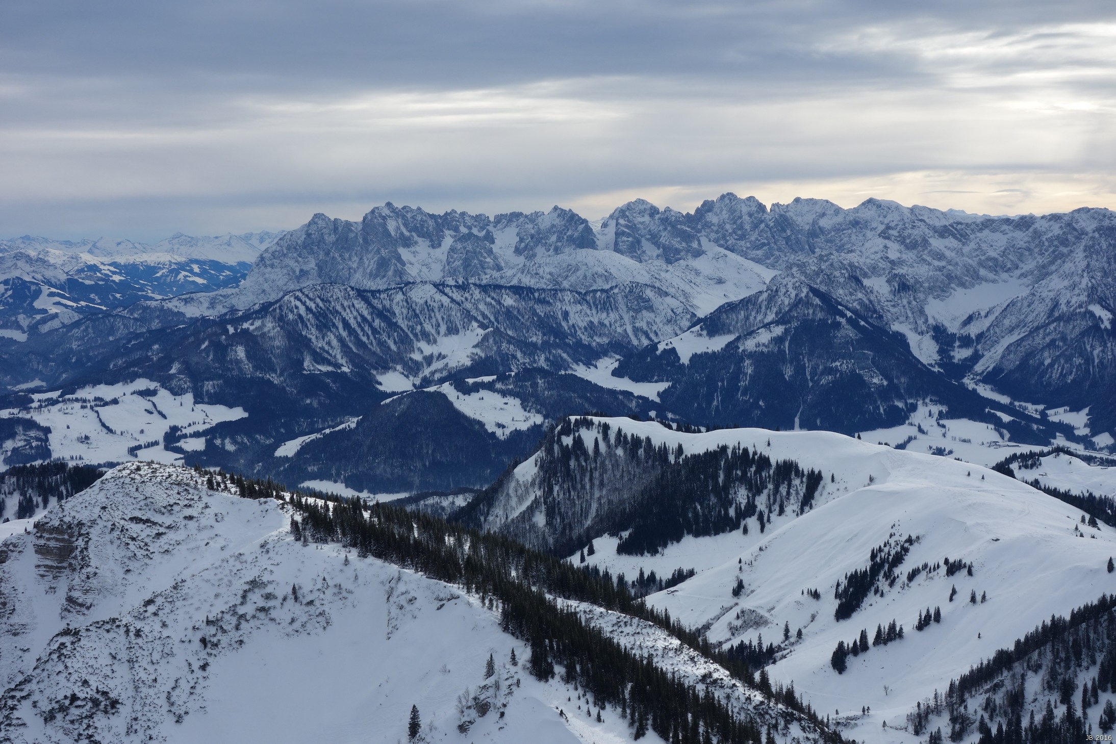Blick nach S: links im Vordergrund der Breitenstein, dahinter der Wilde Kaiser