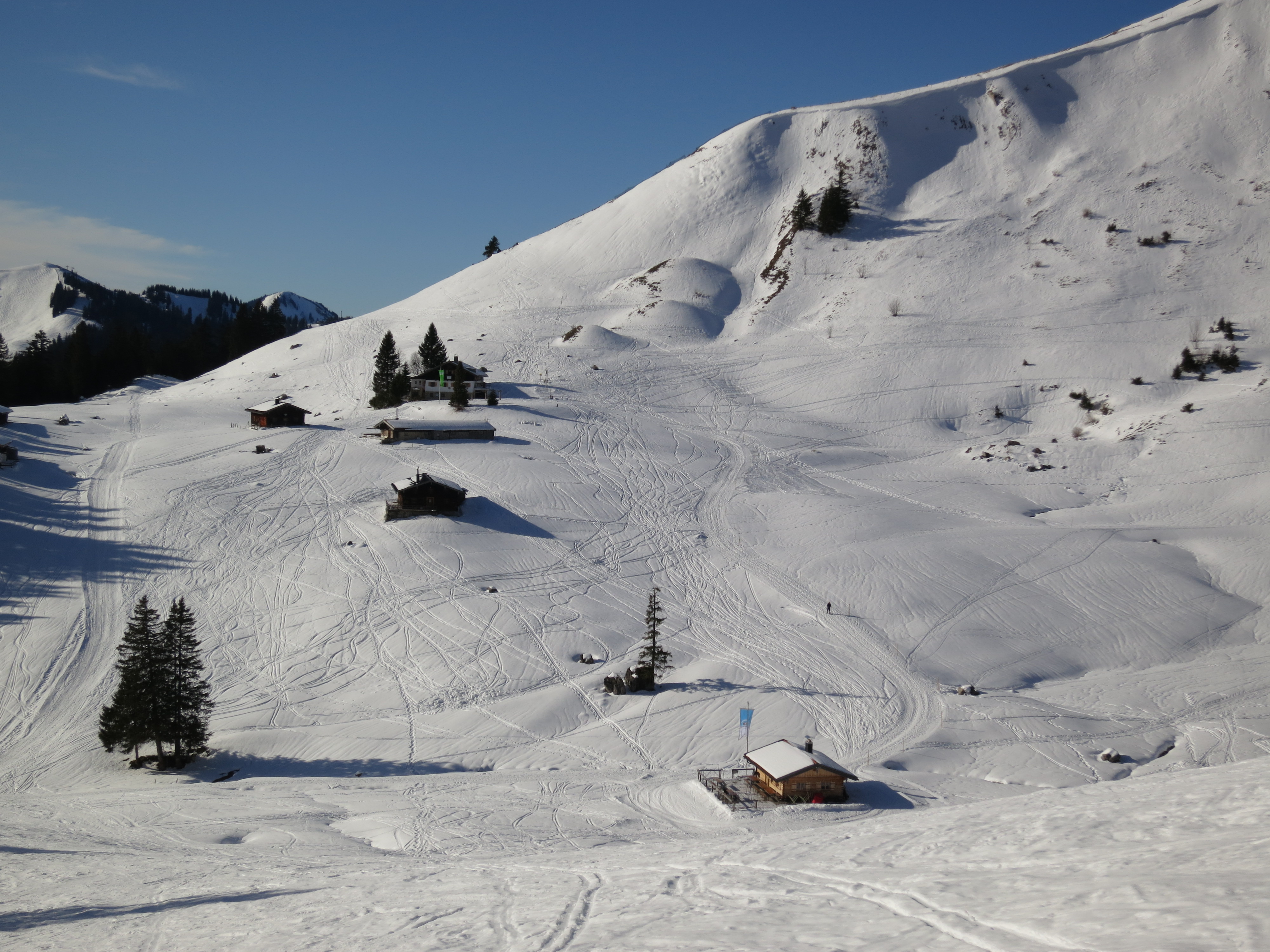 Sonstiges: gestern war ich auf dem Roßkopf über die Grünseeroute. Ging ganz gut (Piste offiziell geschlossen, braune Stellen konnten aber noch umfahren werden). Im freien Skiraum war's gestern weniger durchfeuchtet als heute.