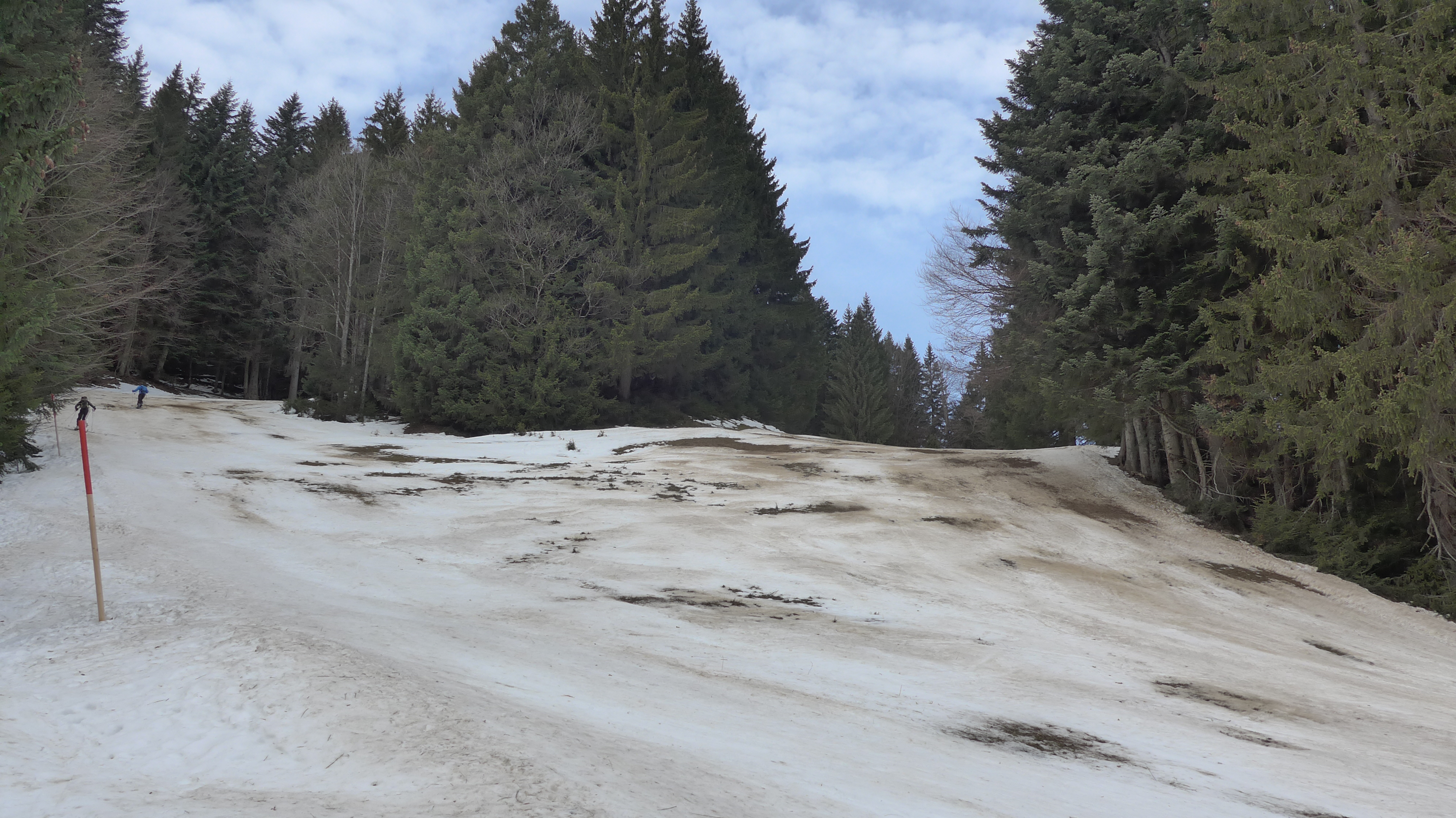 In der Waldpassage schon sehr wenig Schnee - Spur ist recht erdig - eine Ferkelei - mind. 2 x aper - nicht empfehlenswert.