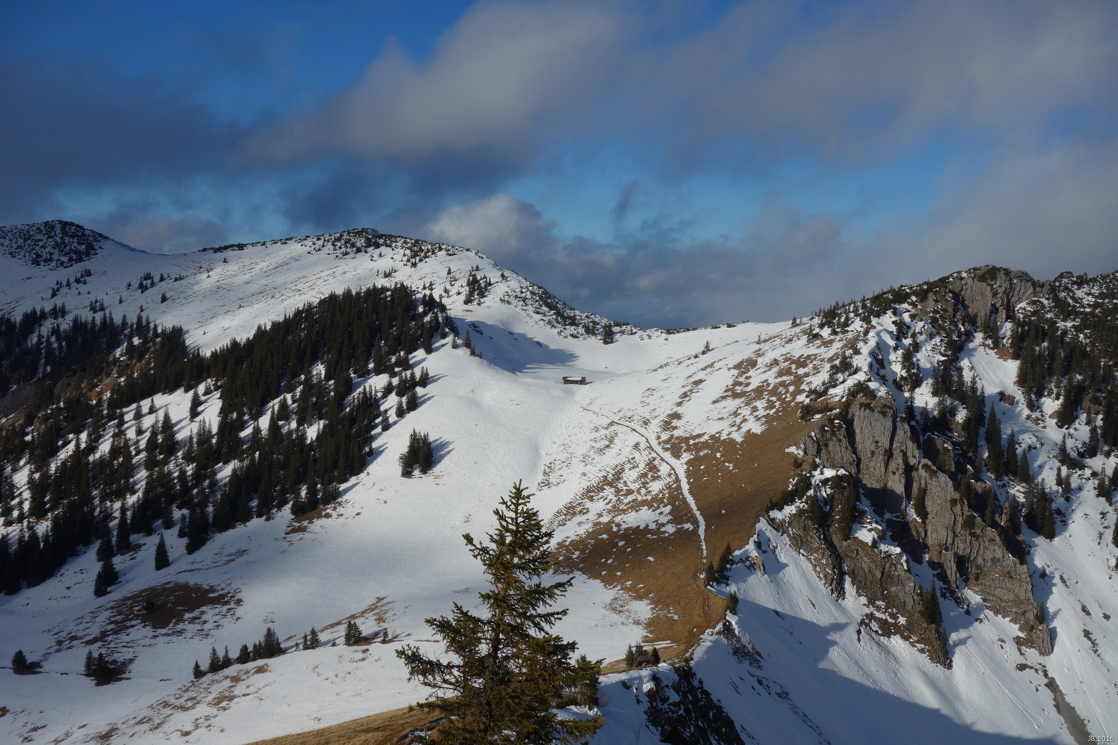 Tourenverhältnisse: im Gipfelbereich wenig Schnee, der schattige Rauhkopfhang ist sehr weich und verspurt.