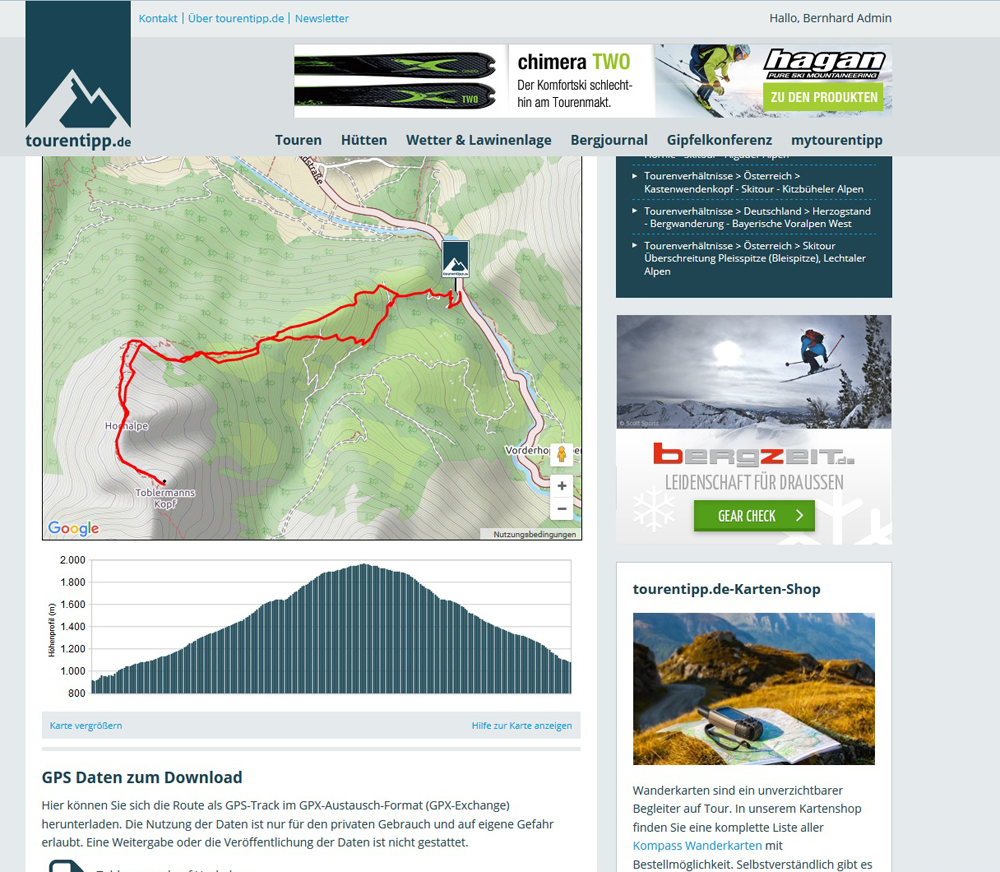 Bei allen Routen, bei denen ein GPS-Track hinterlegt ist (und das sind die meisten), wird jetzt im Service-Bereich unter der Karte ein Höhenprofil angezeigt.