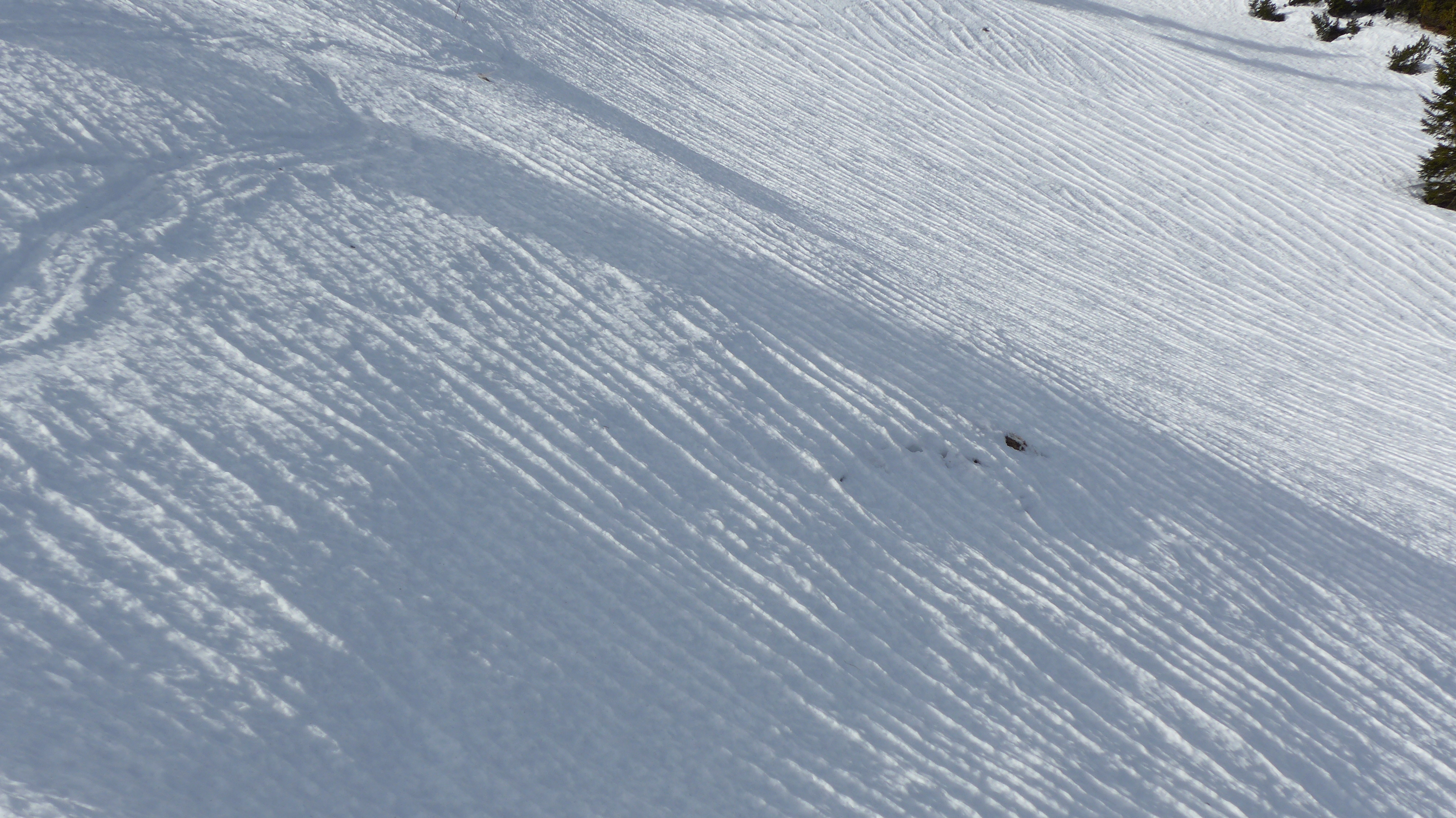 Gefahreneinschätzung: Abfahrt um 12.15 Uhr - Schnee noch nicht allzu weich (10 cm aufgeweicht).