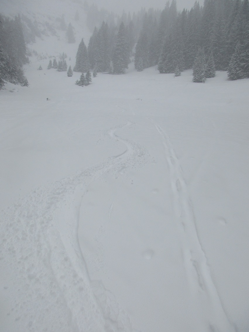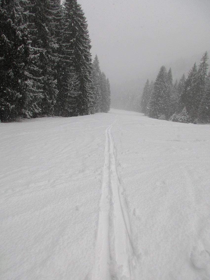 Tourenverhältnisse:Gut - Einsam - Schneefall - 10/15cm Neuschnee - tragende Unterlage - mit guten Ski unterwegs - keine Materialschäden - oben recht windig - Schnee gut zu fahren