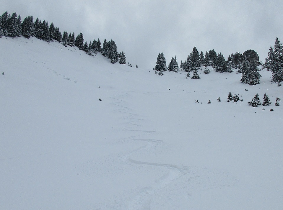 Tourenverhältnisse:Sehr gut / trockener Pulverschnee auf tragendem Altschnee / Aufstiegsvariante gemacht
