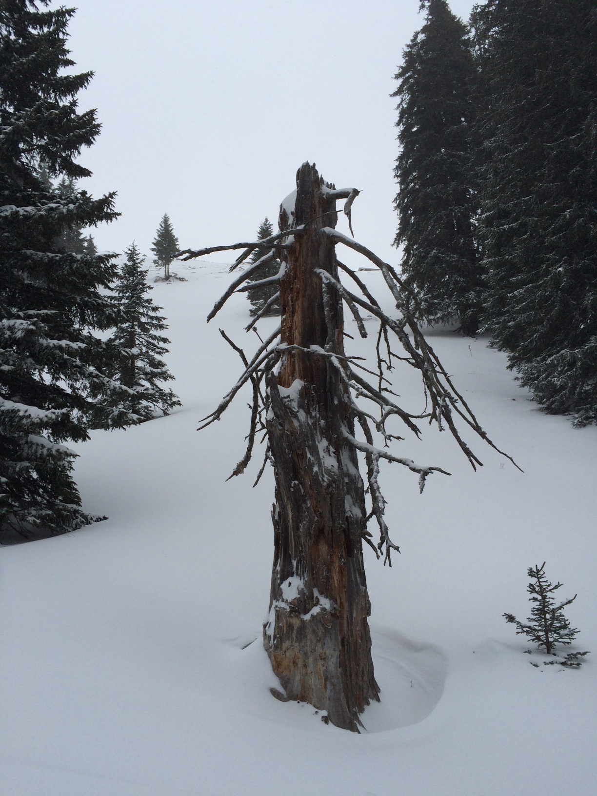 Tourenverhältnisse: Genial, angesichts der aktuellen Situation! Unten am P +1 °C. Die Skipiste durchgehend gut mit Schnee bedeckt, am Rand der Piste auch noch Platz für Spuren im Tiefschnee. Von der der Bergstation des Skilifts weg etwas schwerer Pulver. Ab der Rauheckalm war es dann windig und die Sicht wurde zunehmends schlechter. Am Grat von Vor- zu Hauptgipfel war es dann schon recht neblig. Abfahrt durch wunderbaren Pulver fast ohne Steinkontakt.
